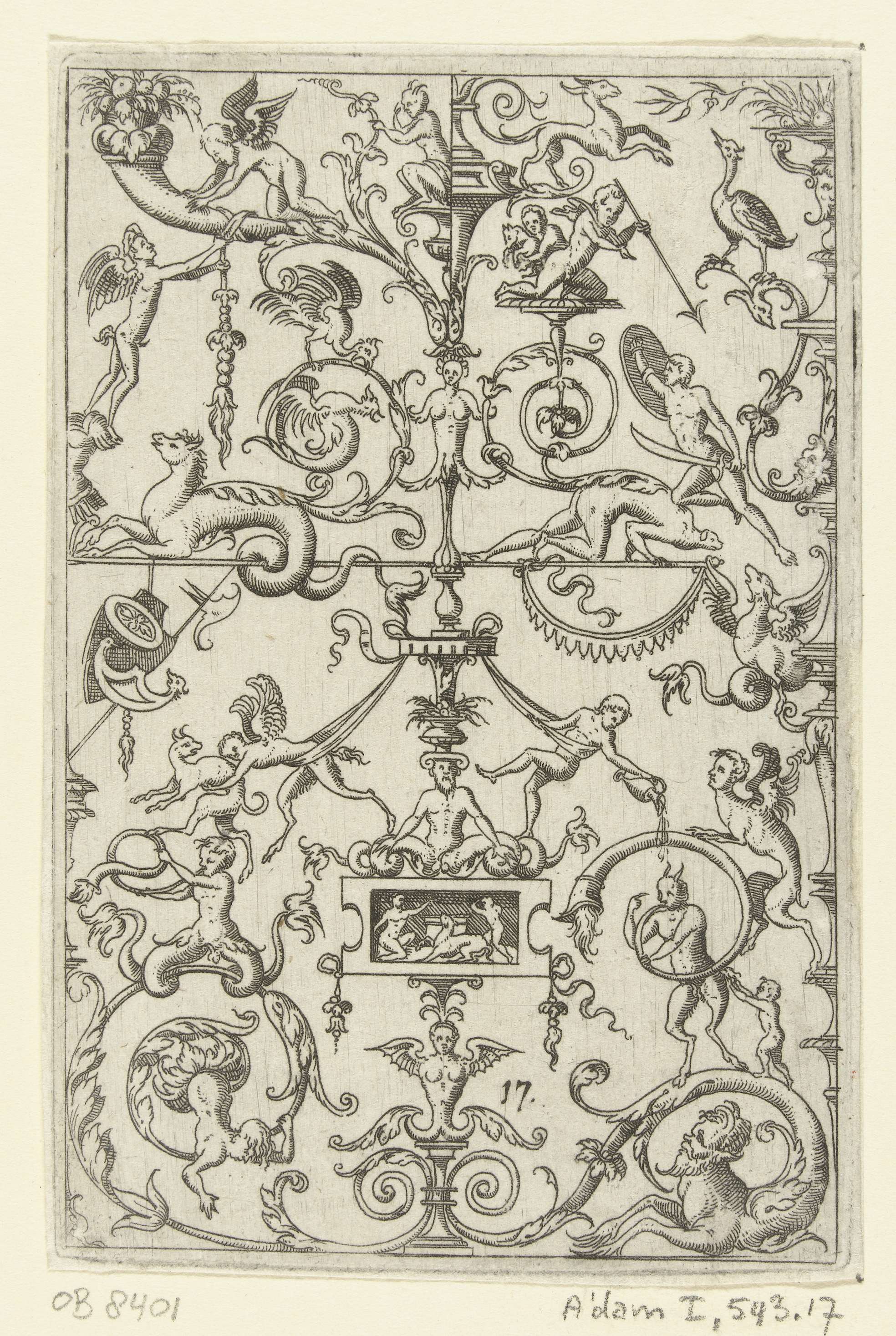 Kandelaber, met onderaan twee gevleugelde fabelwezen...
