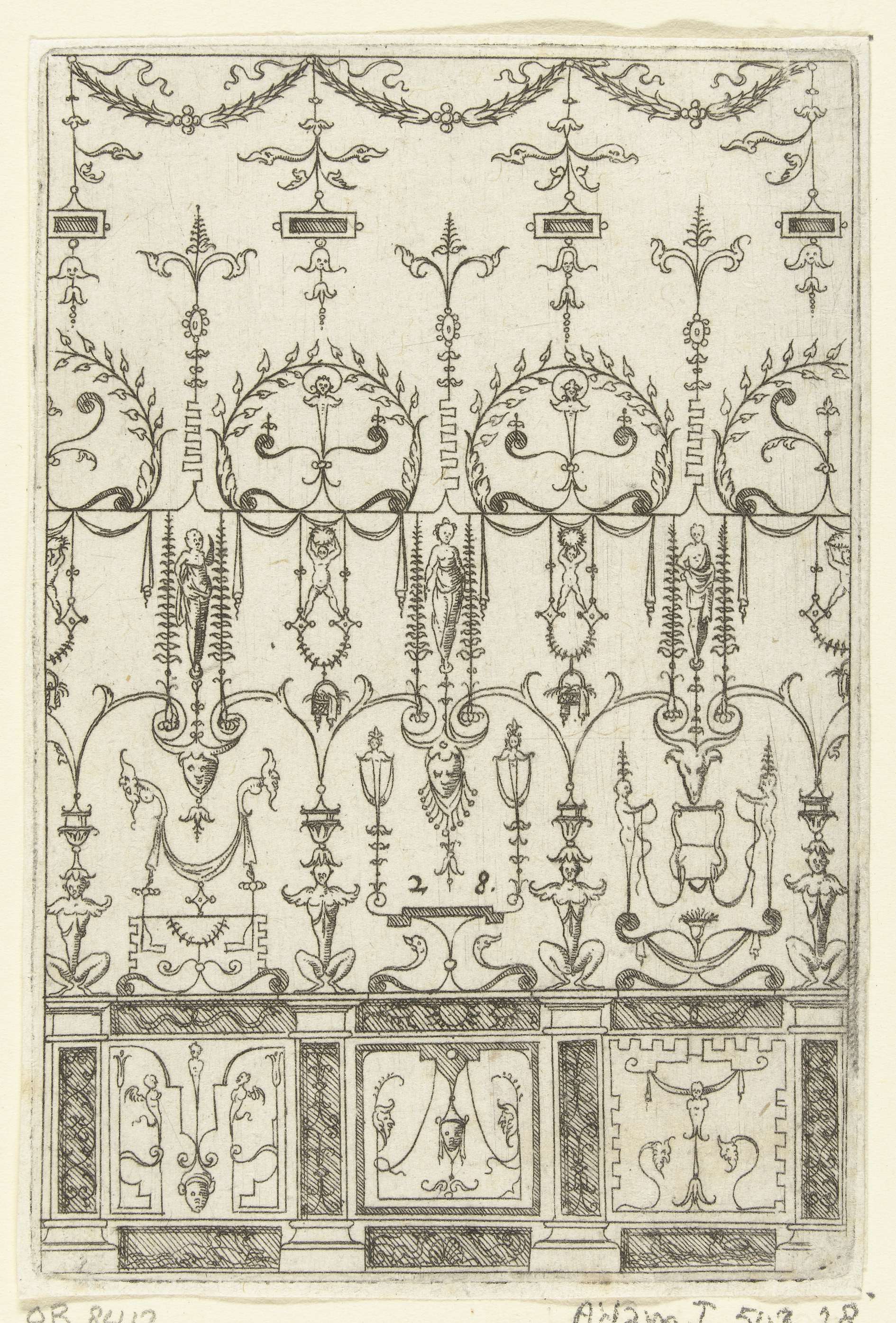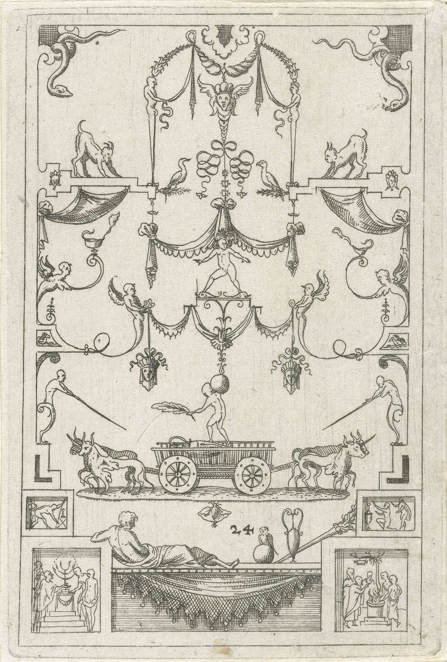 Onderaan ligt een man op een voetstuk, gedecoreerd m...