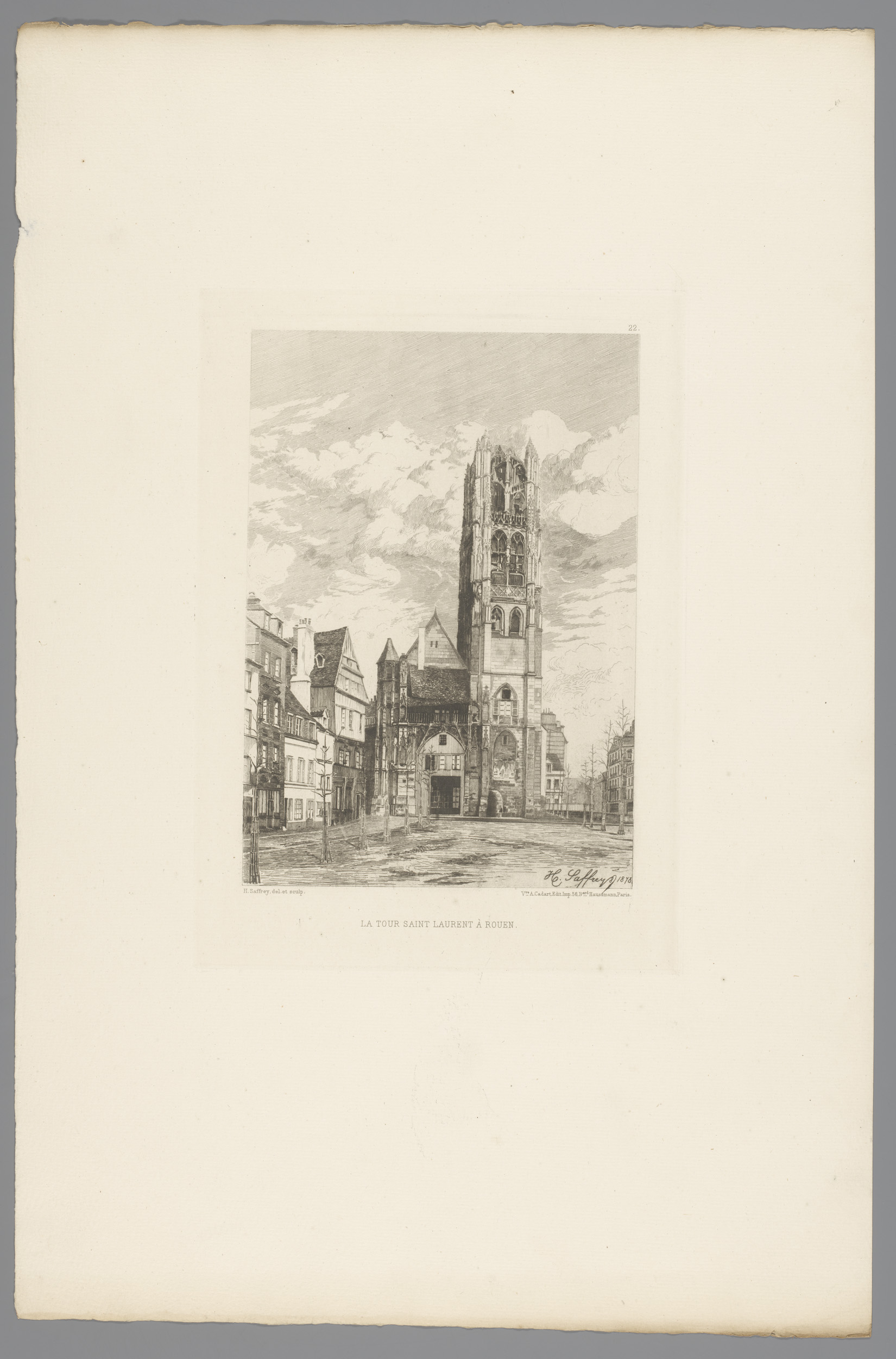 Gezicht op de toren van Saint-Laurent in Rouen