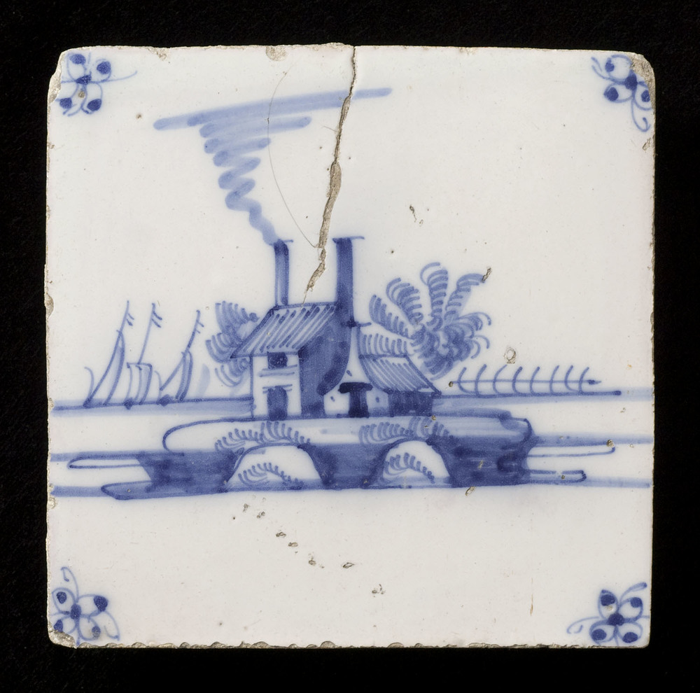 tegel van keramiek met tinglazuur, voorstellende: ru...