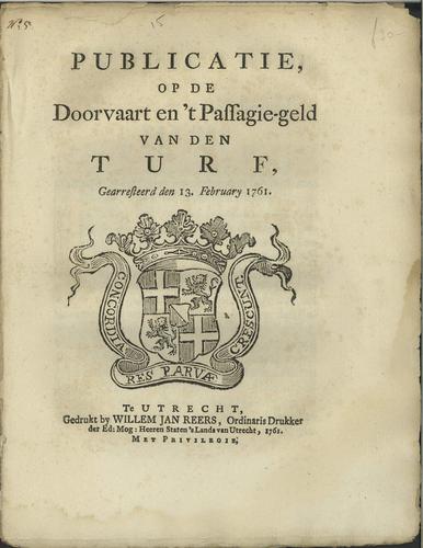 Plakkaat doorvaart- en passageld van turf, 1761