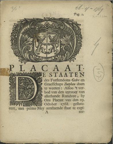Plakkaat uitvoerverbod rundvee, 1769