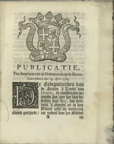 Plakkaat ampliatie van de ordonnatie op bier, 1764