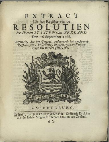 Plakkaat inning van gemaal, 1766