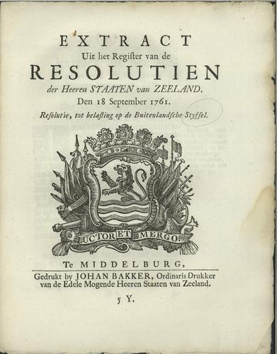Plakkaat belasting op buitenlandse stijfsel, 1761