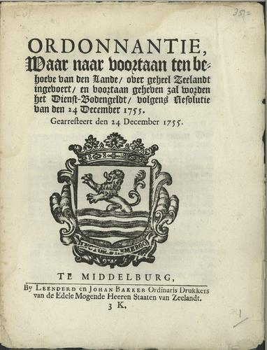 Plakkaat dienstbodengeld, 1755