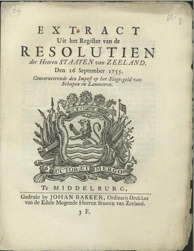 Plakkaat slachtgeld schapen en lammeren, 1755