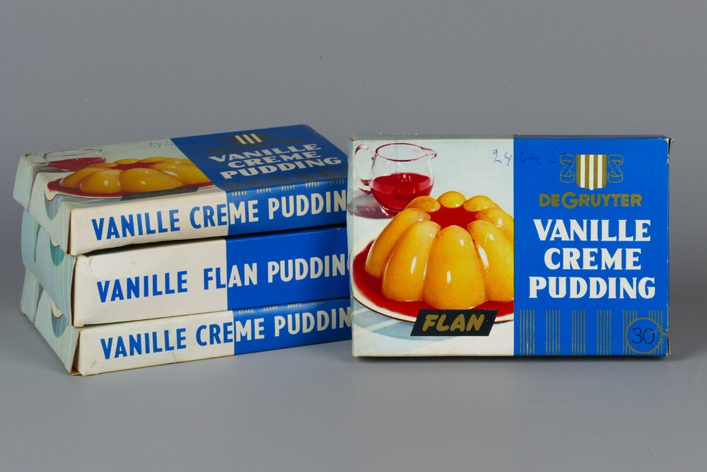 Puddingpoeder voor vanille flan in doos van karton, ...