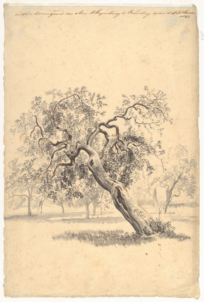 Aquarel, voorstellende de boomgaard van Arie Bleijen...