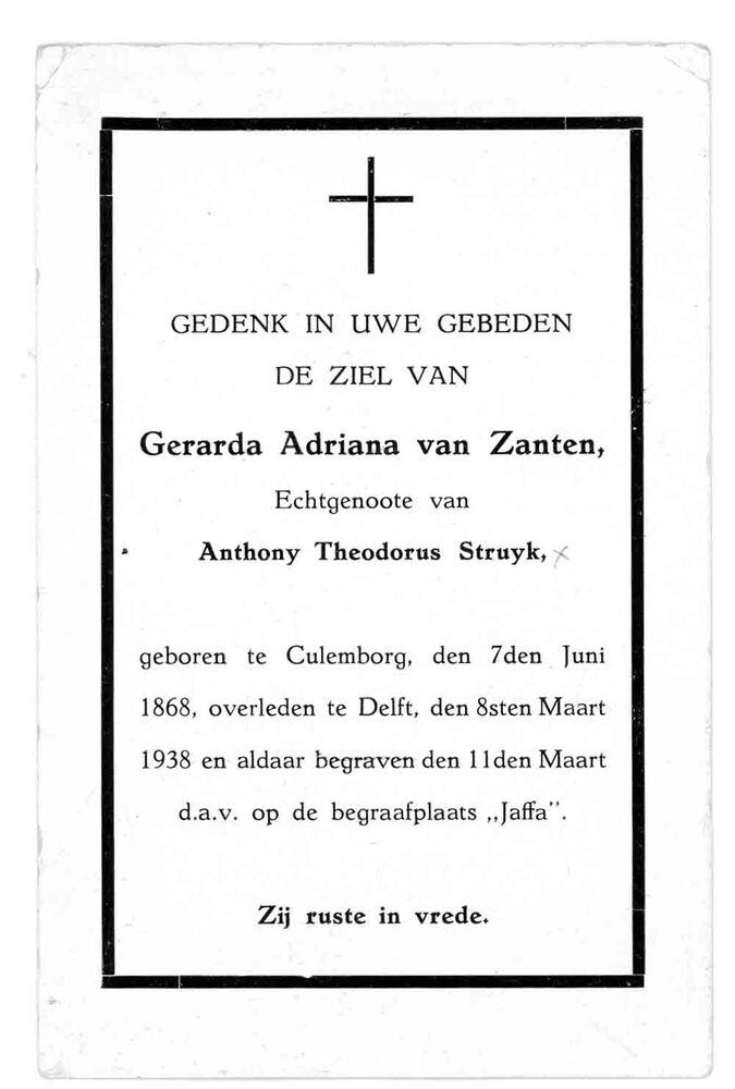 bidprent voor Gerarda Adriana van Zanten. Geboren 07...