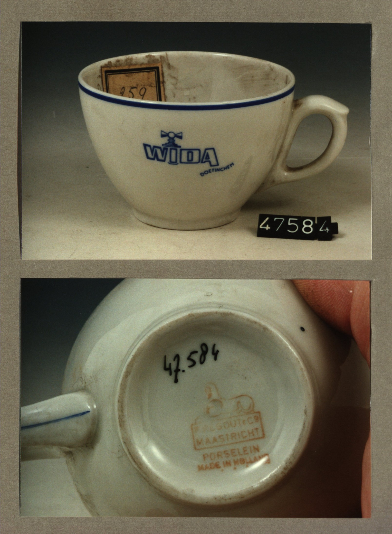 Kop met opschrift, model SMN met decor Wida Doetinchem