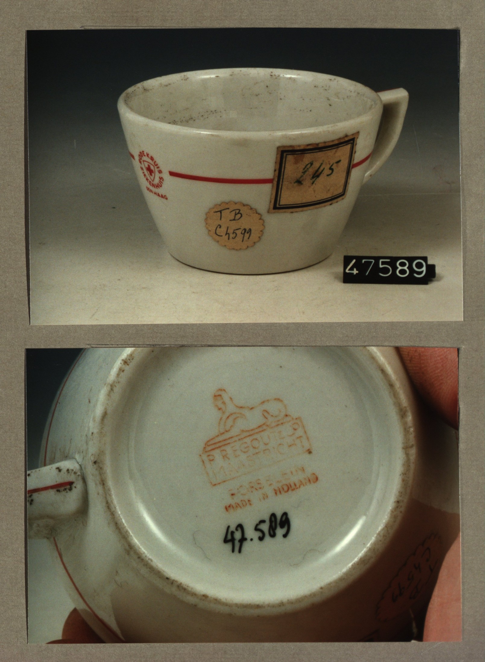 Kop met opschrift, model P met decor Rode kruis ziek...