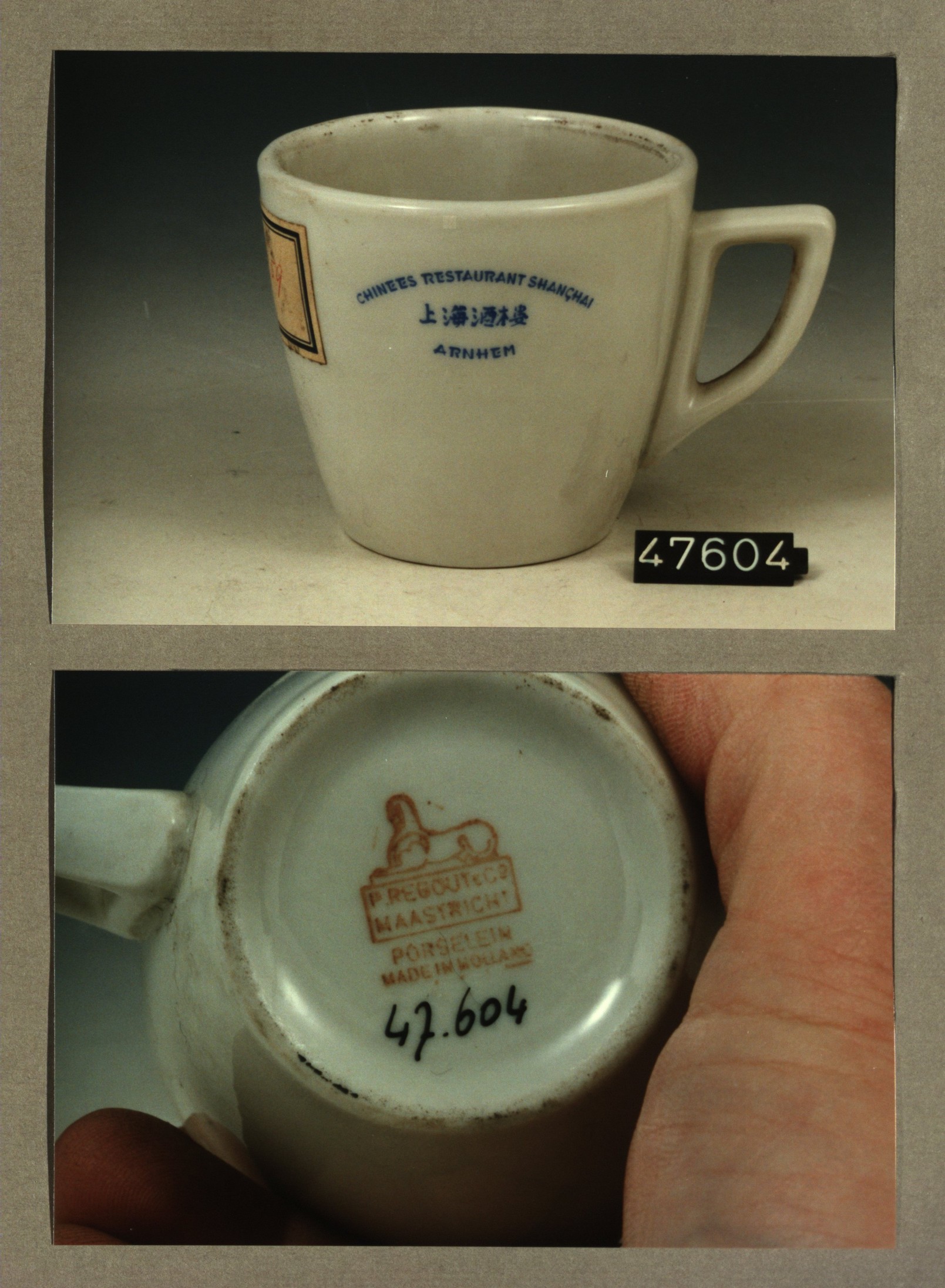 Kop met opschrift, model P met decor Shanghai Chinee...