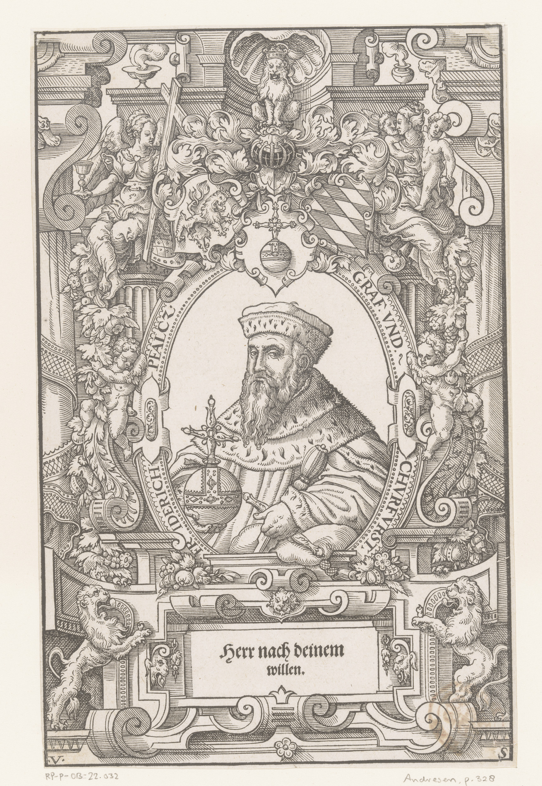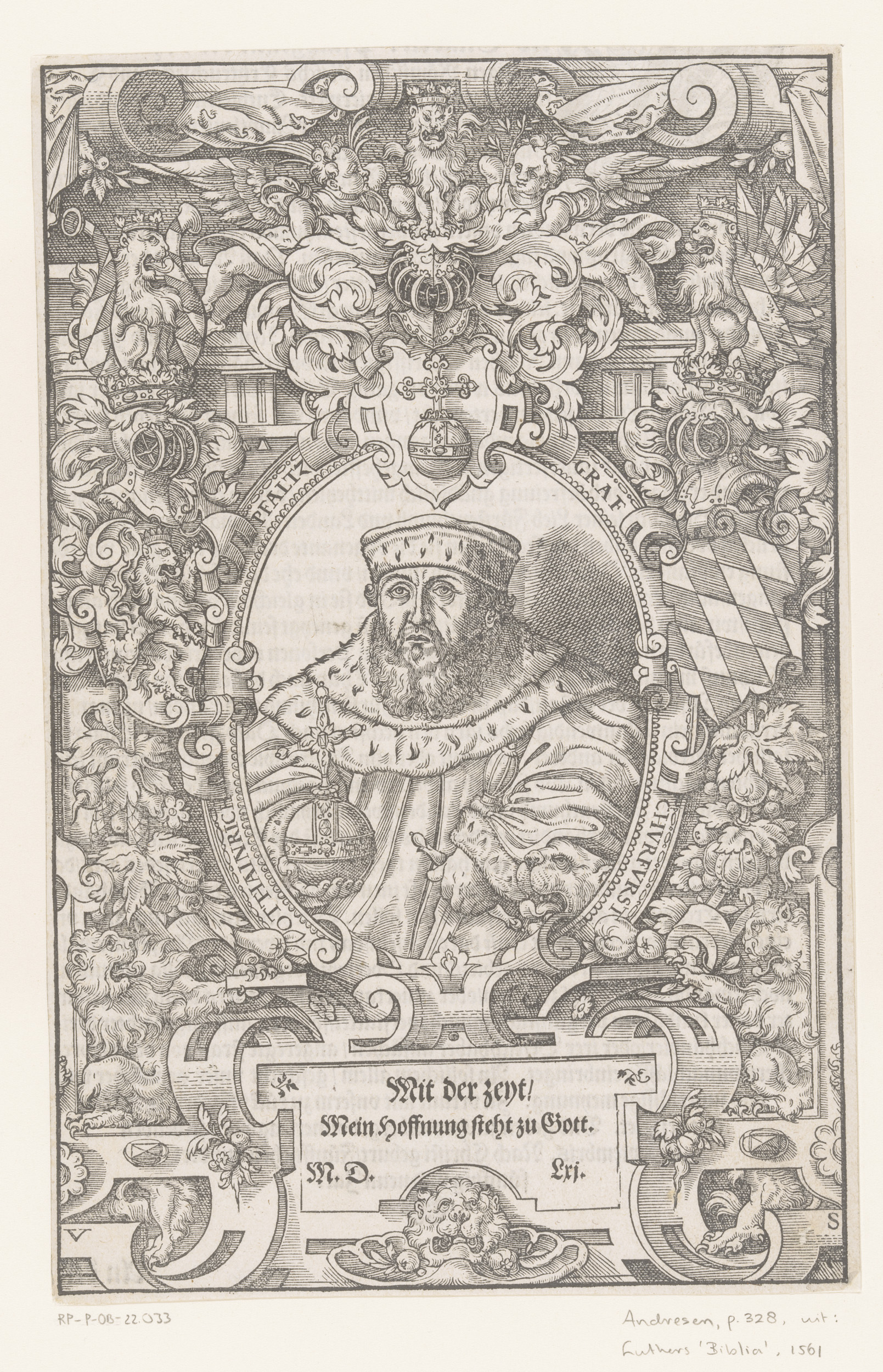Portret van Ottheinrich von der Pfalz in een rolwerk...