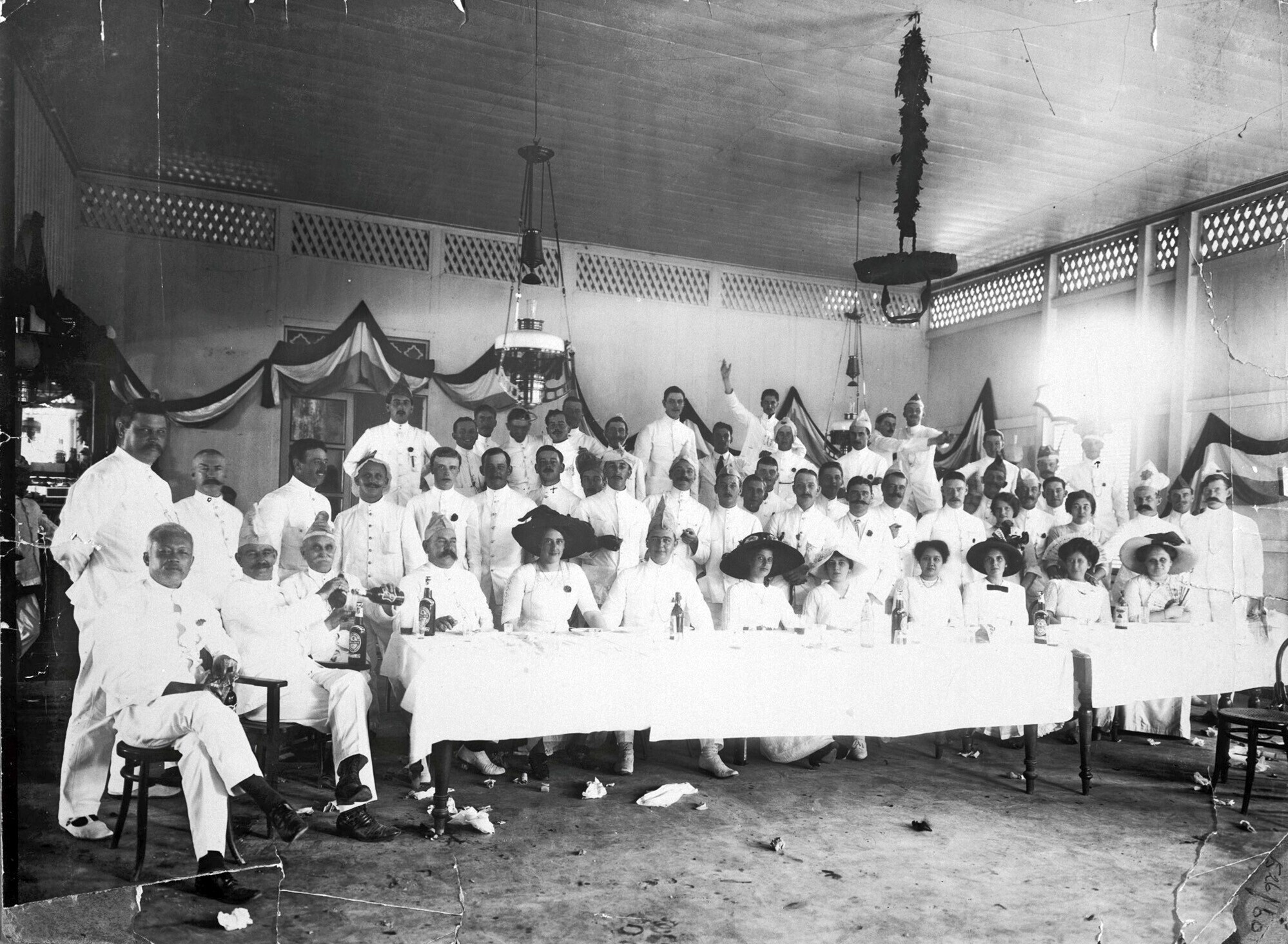 Groepsportret tijdens een feestelijke aangelegenheid...