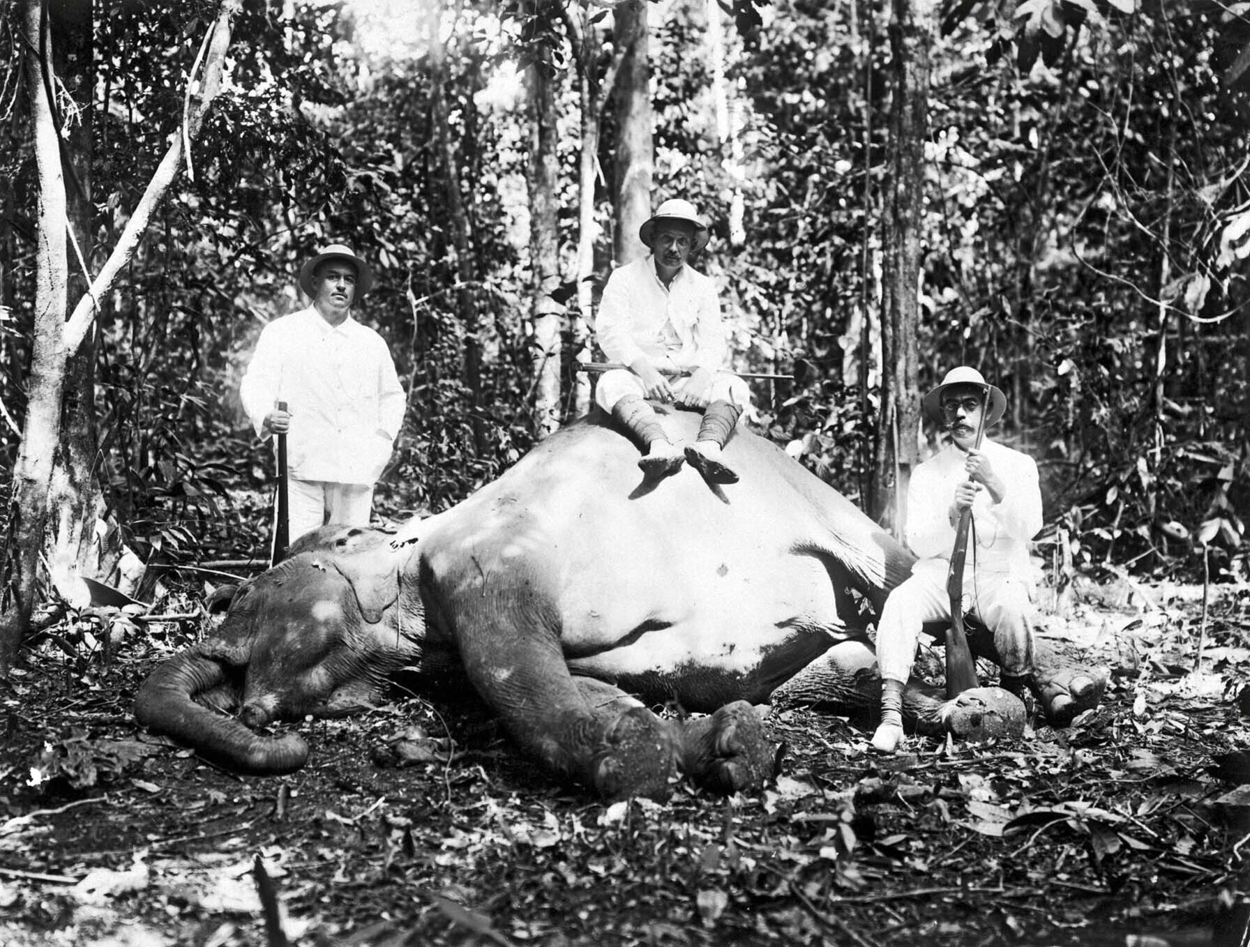 Mannen trekken bij Djambi een gevangen krokodil op d...