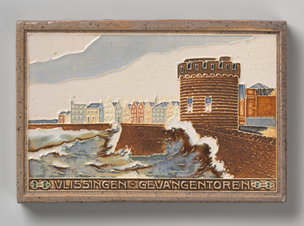 Tegel in cloisonné-techniek, met voorstelling: Vliss...
