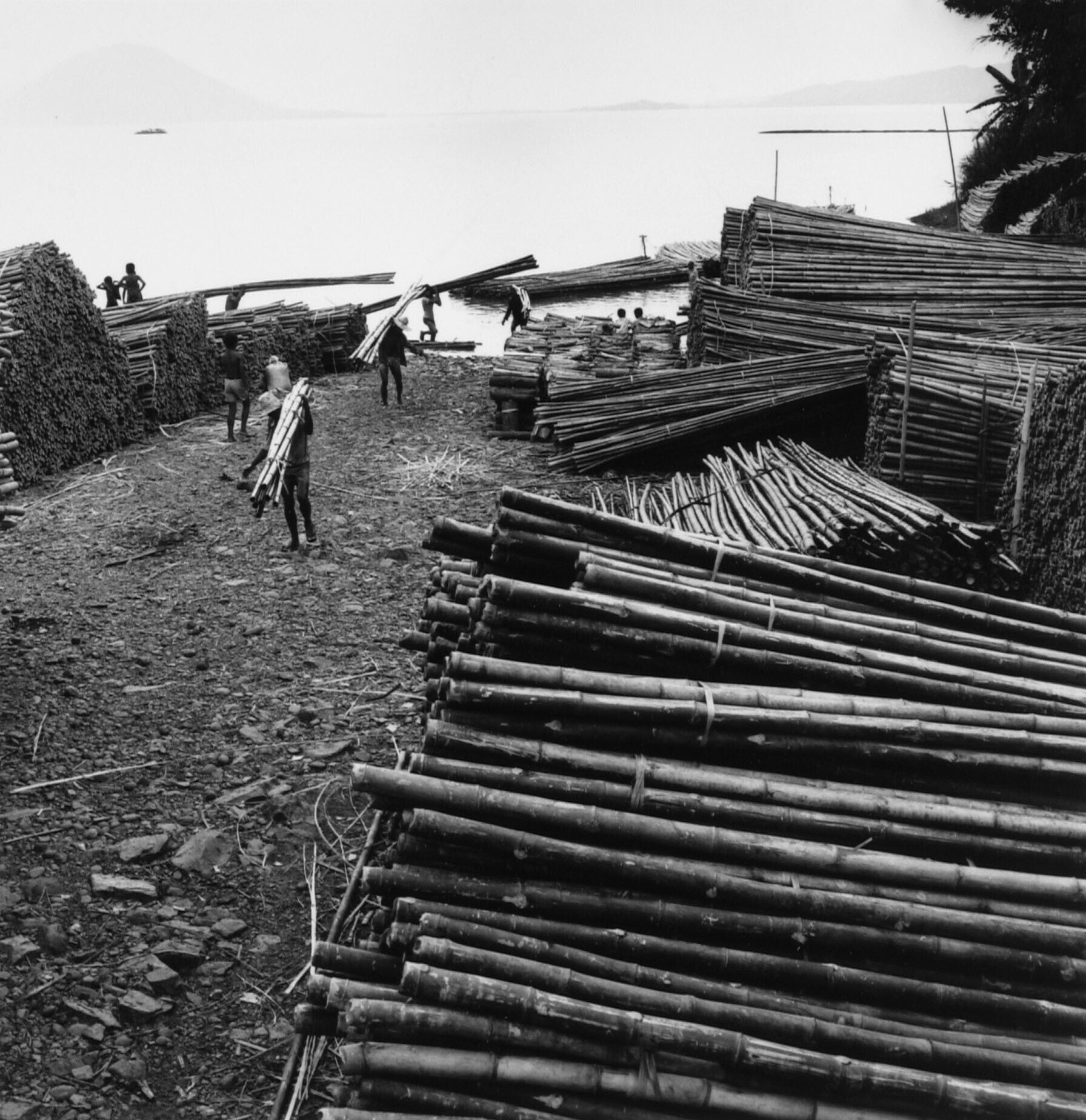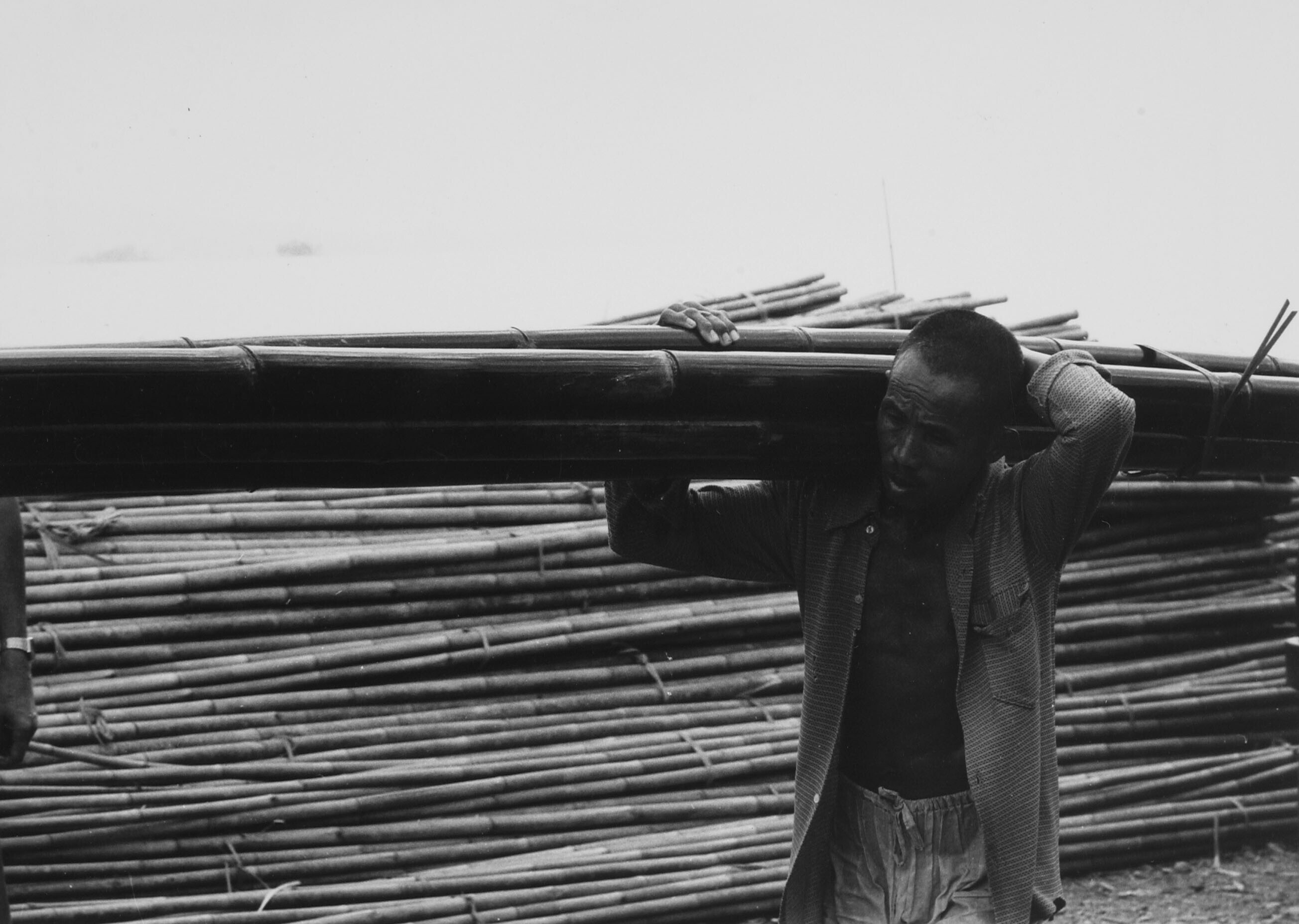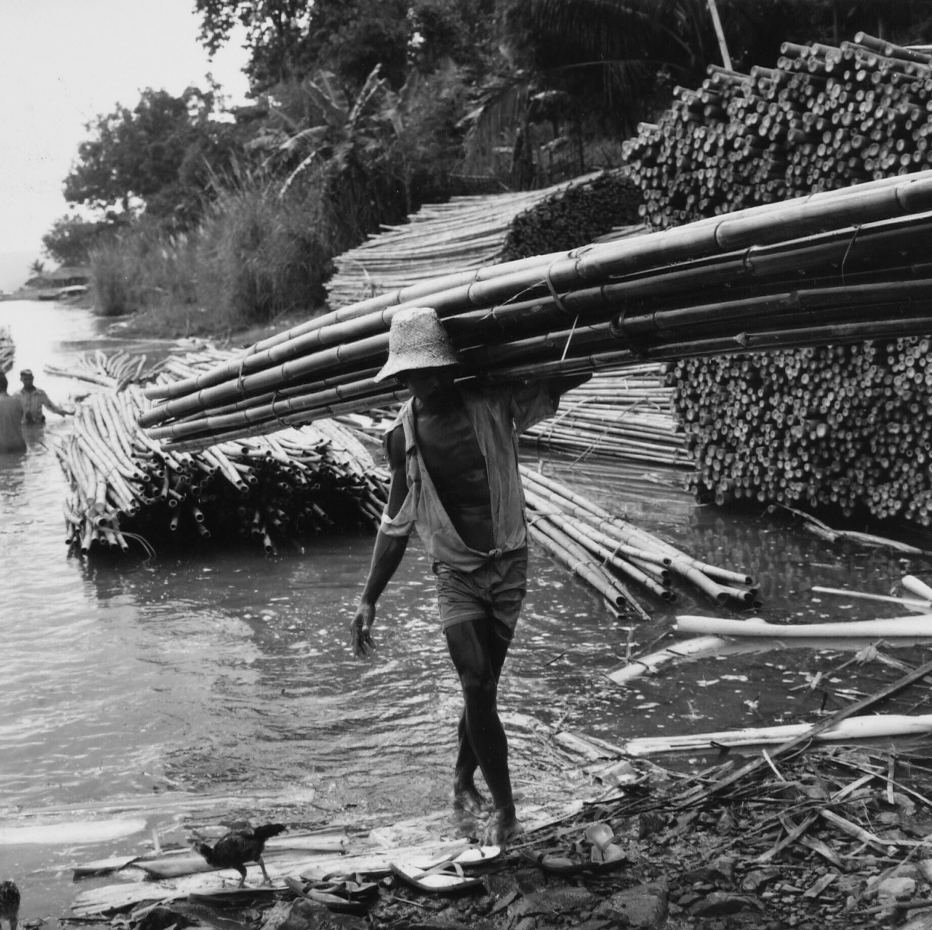 Met vlotten wordt bamboe over het Jatiluhurmeer aang...