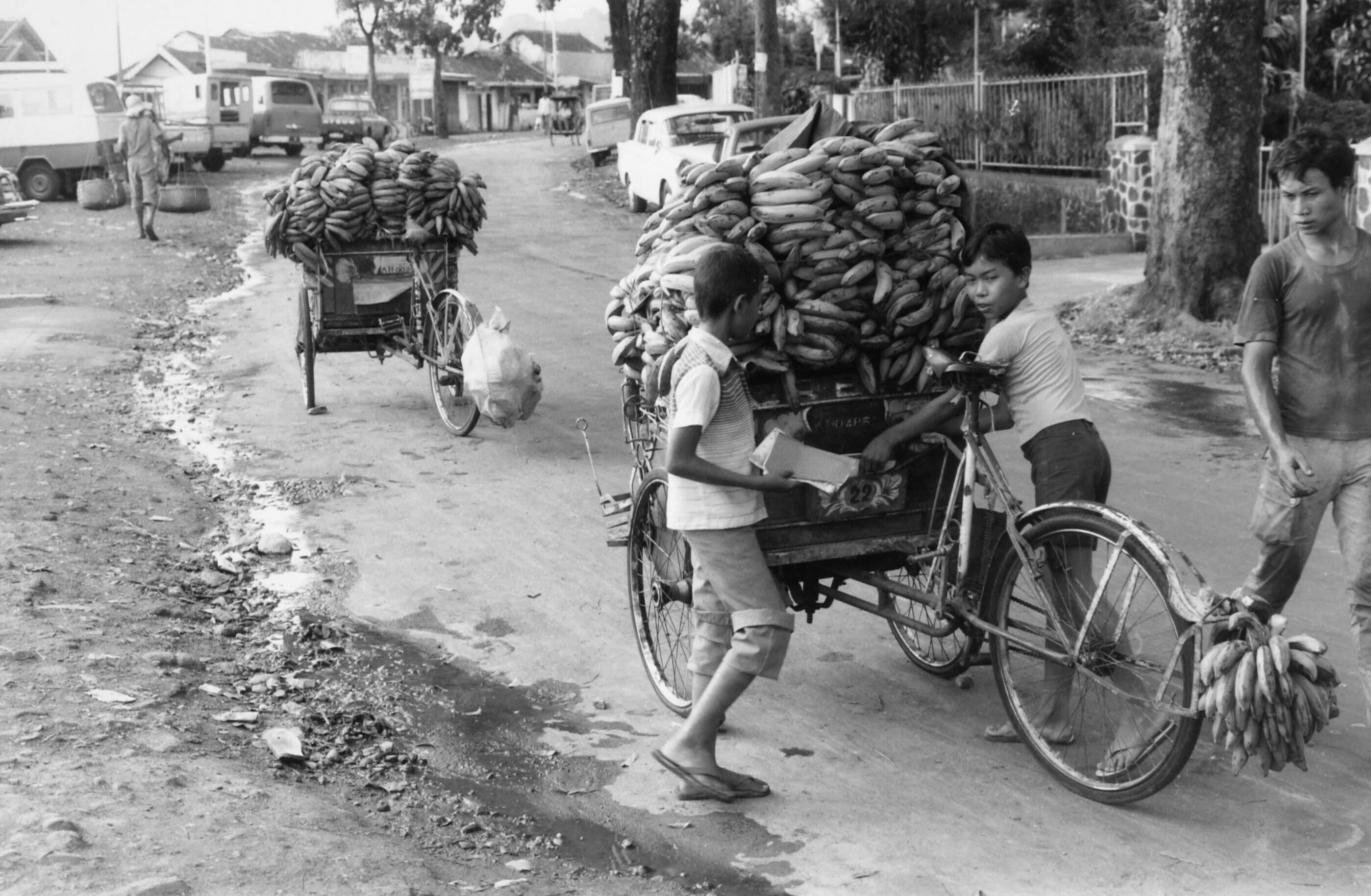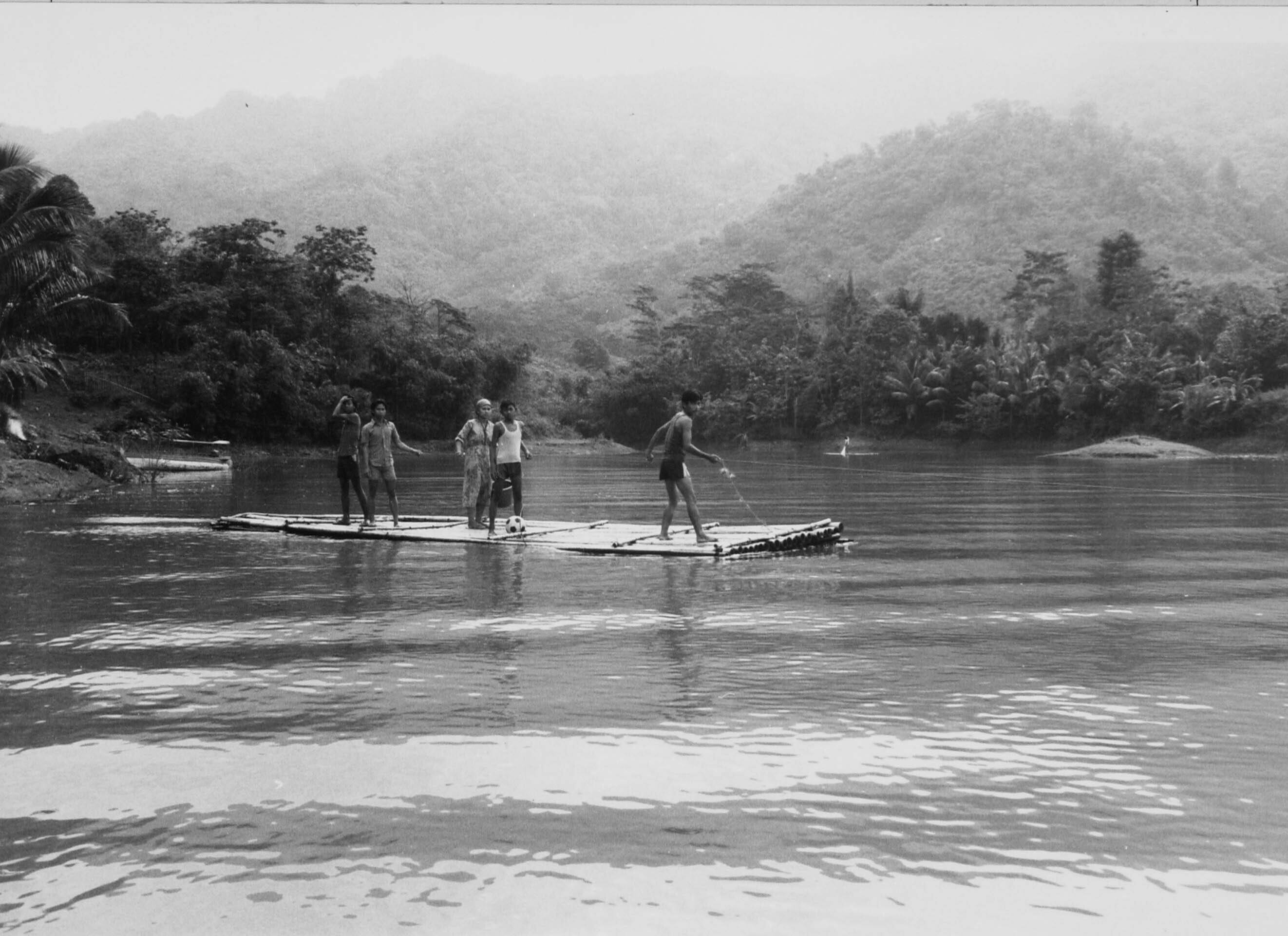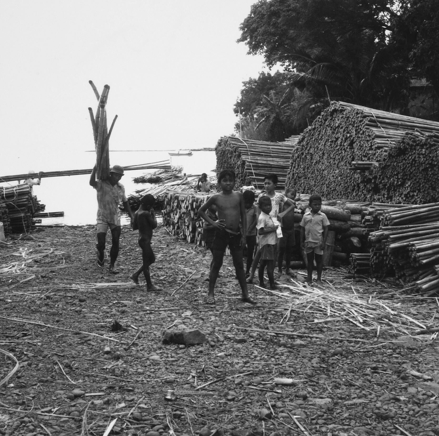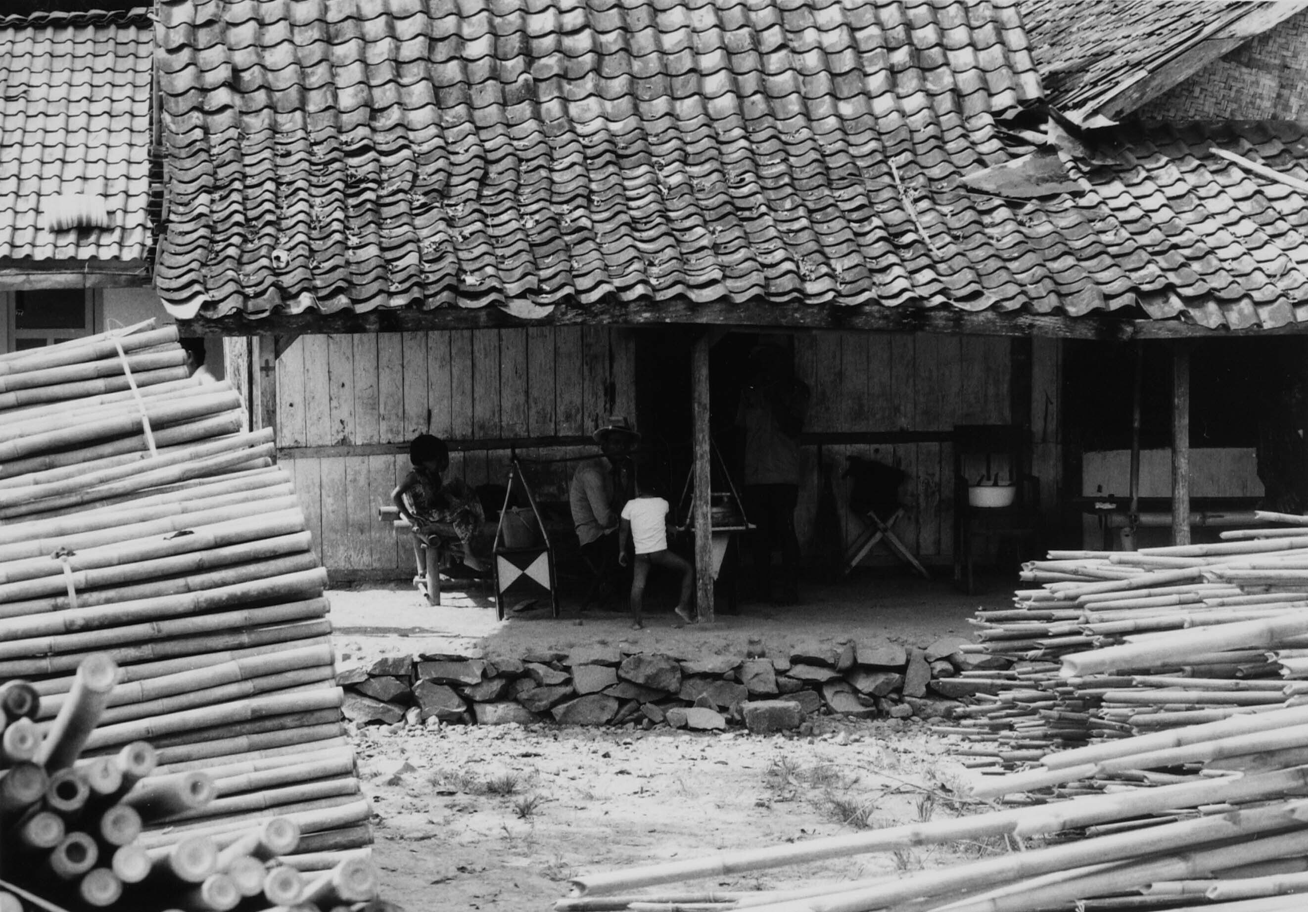 Met vlotten wordt bamboe over het Jatiluhurmeer aang...