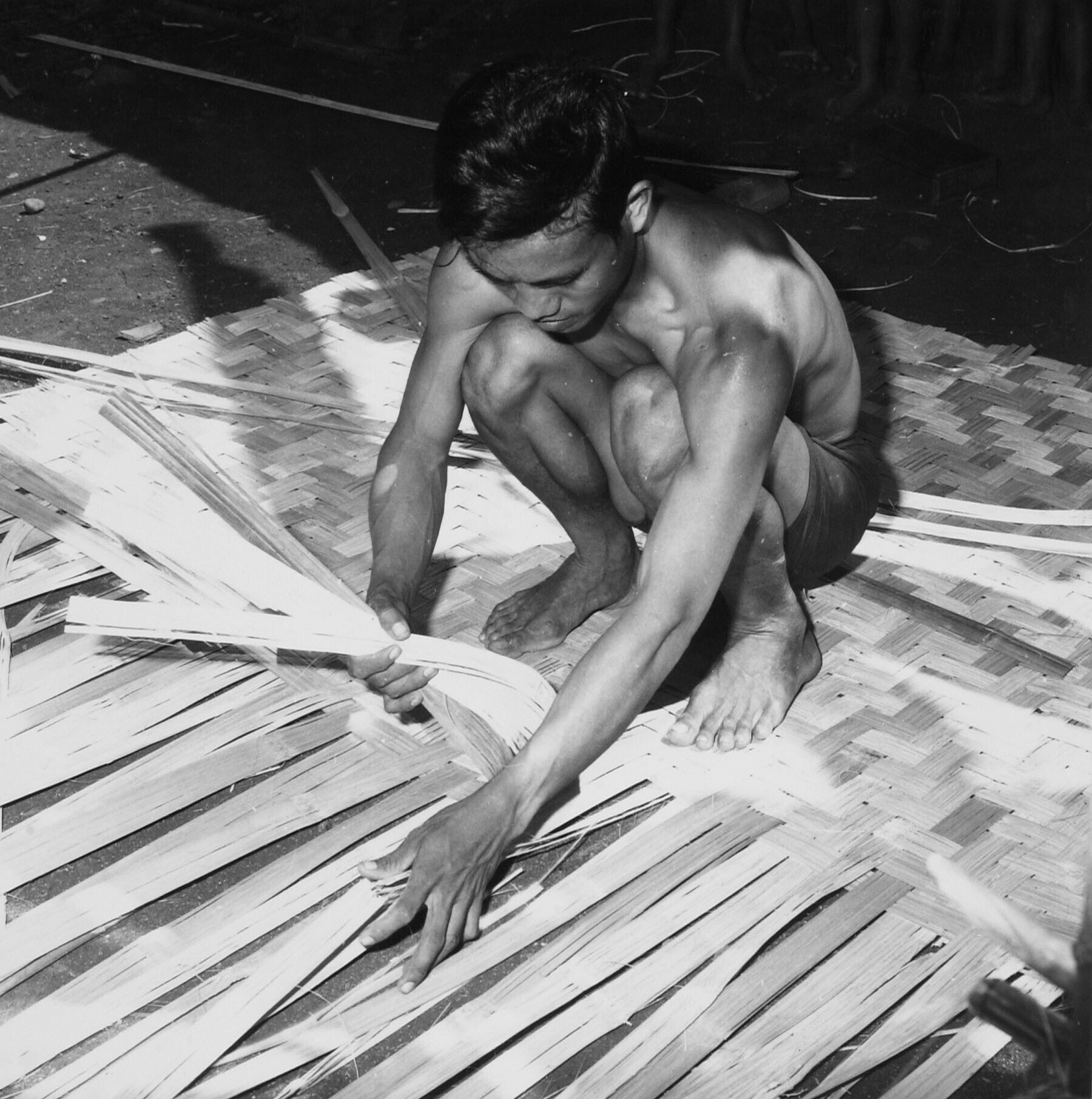 Stapels wanden van gevlochten bamboe, bestemd voor d...