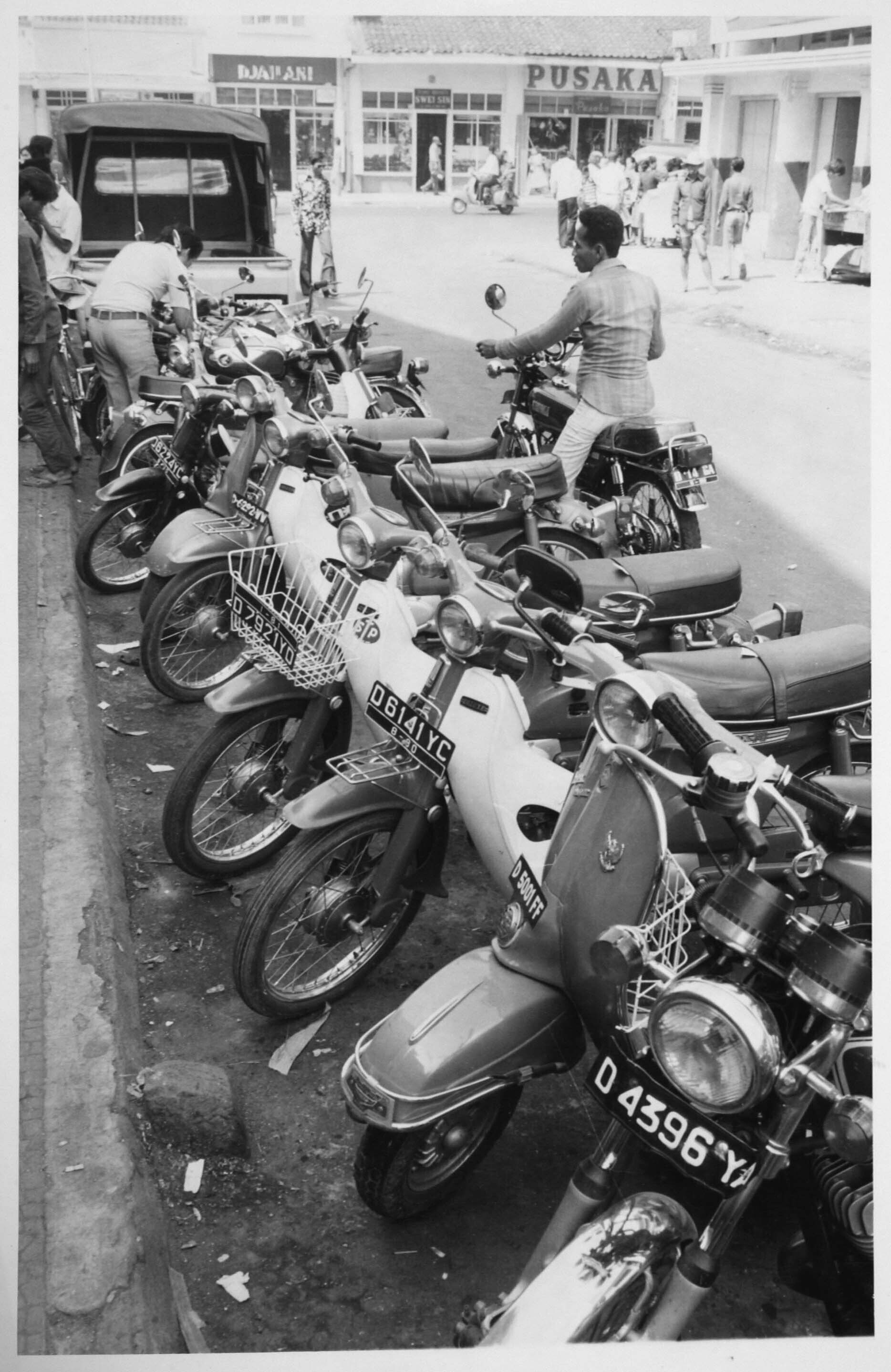 Parkeerplaats voor motorfietsen en scooters bij Asar...