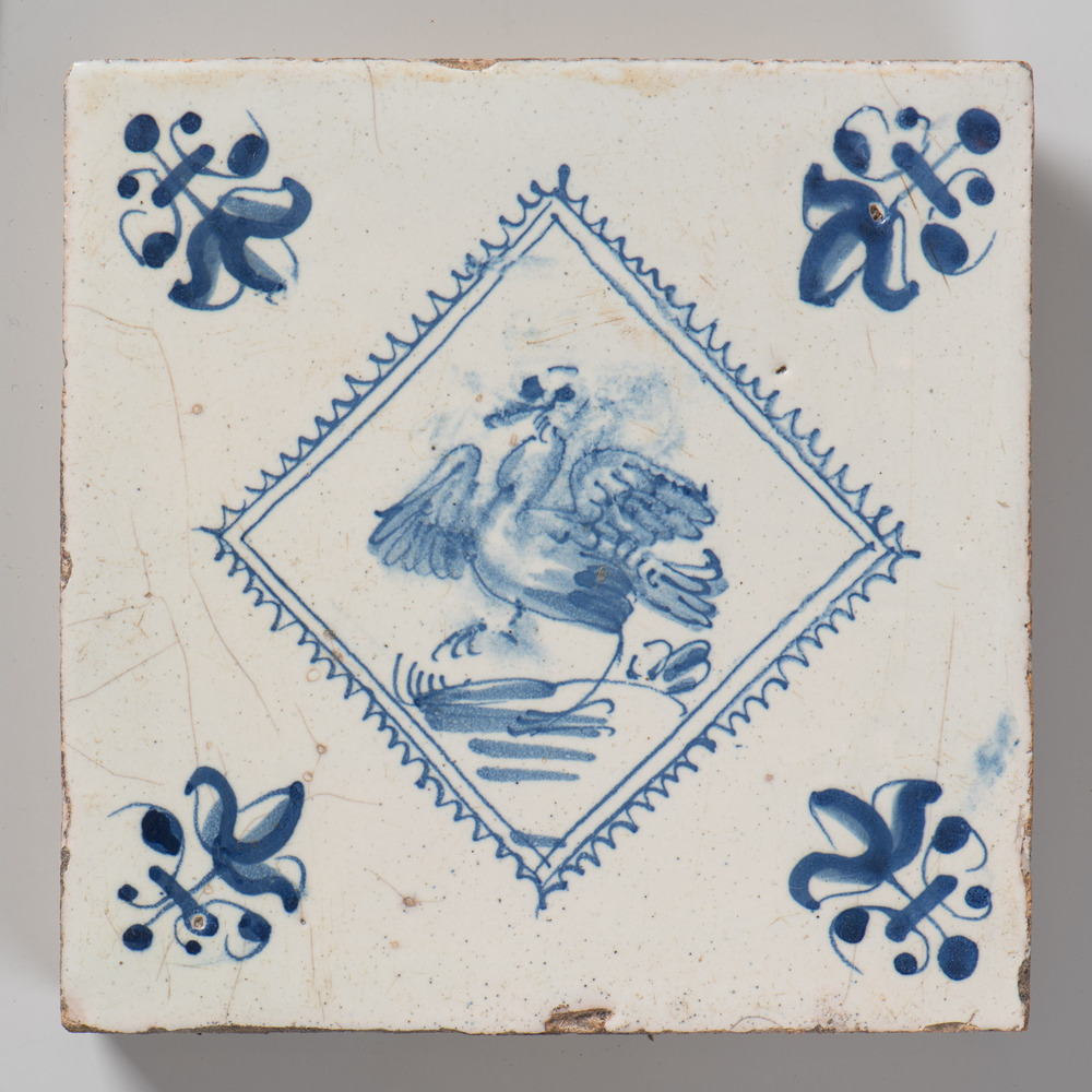 tegel van keramiek met tinglazuur, voorstellende: vo...