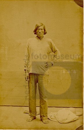 Yaqui poseert met behulp van een neksteun, Guaymas, ...