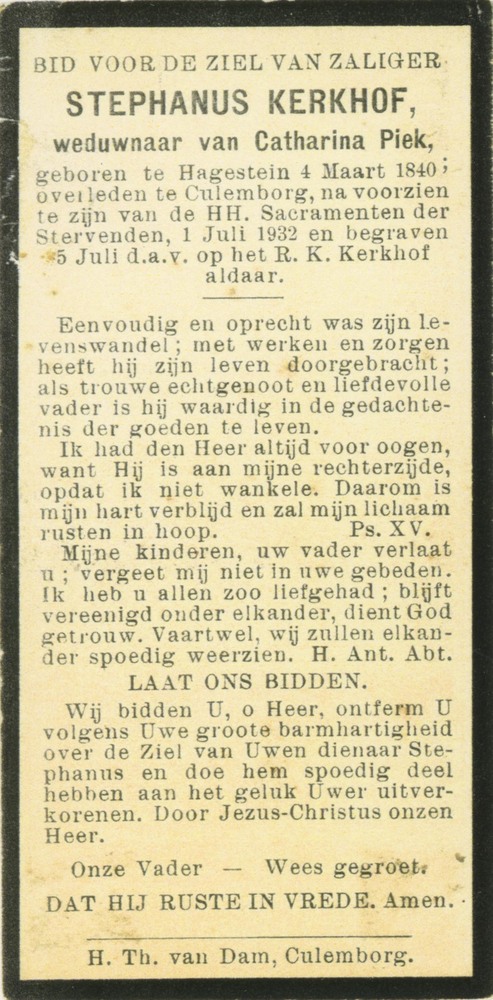 Foto, voorstellende bidprentje Stephanus Kerkhof, Cu...