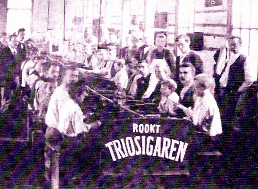 Foto, voorstellende Personeel Triosigarenfabriek te ...