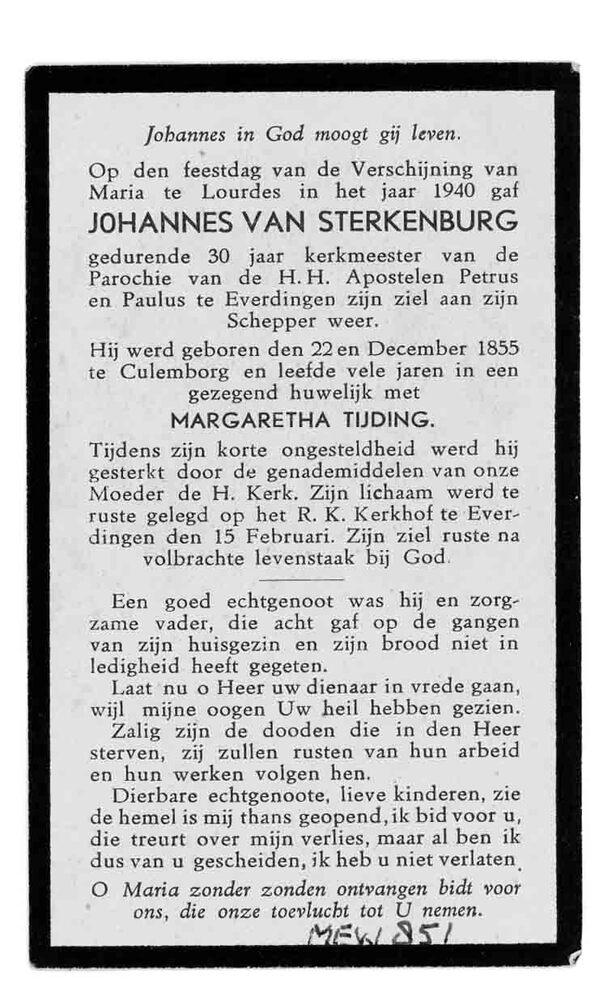 Bidprent voor Johannes van Sterkenburg, geboren 22-1...