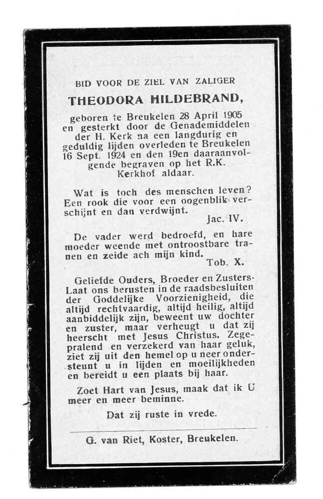 bidprent voor Theodora Hildebrand. Geboren 28-04-190...