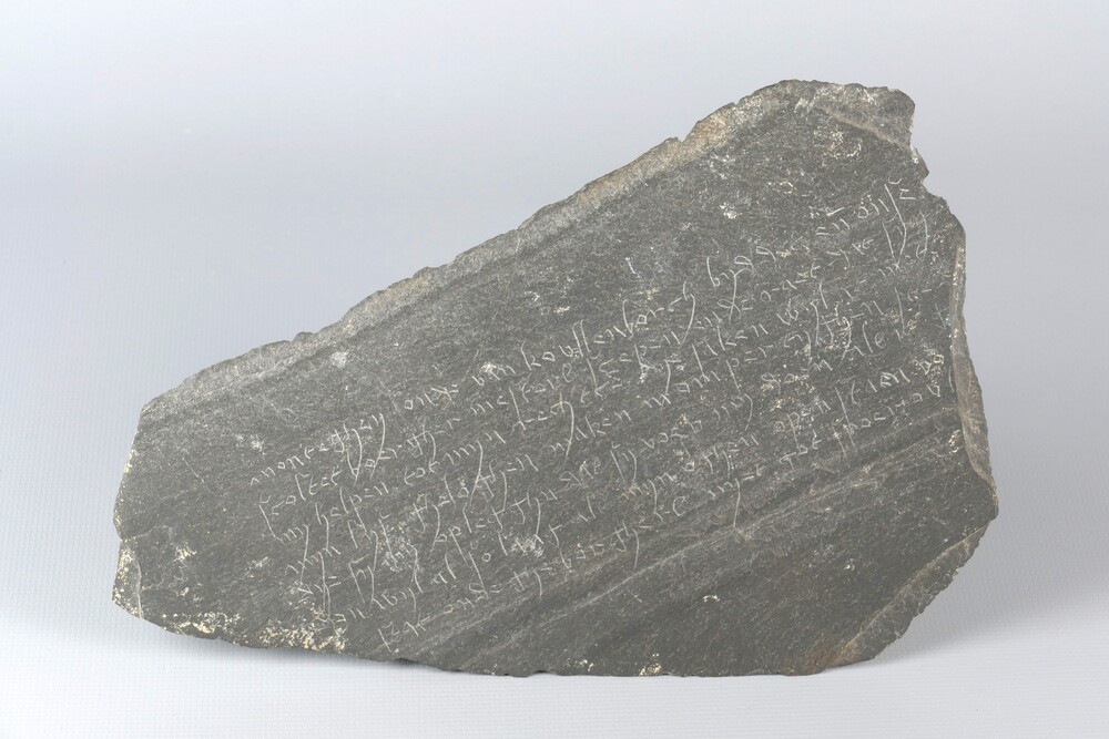 Leisteen met gegraveerde tekst van of aan heer Antho...
