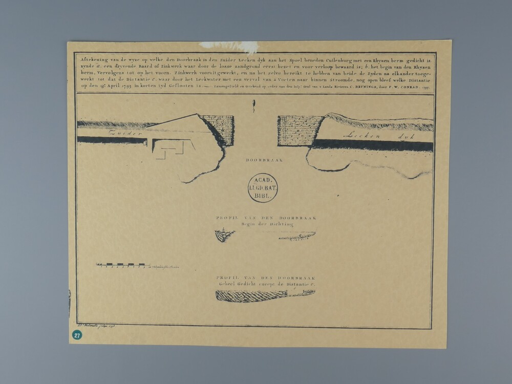 Kopie naar kaart uit 1798 van doorsnede van dijkdoor...