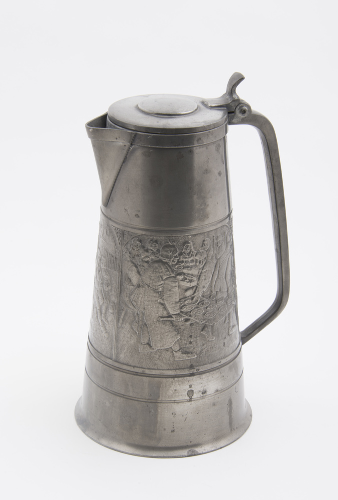 Schenkkan van oud tin, vervaardigd door Metaalwarenf...