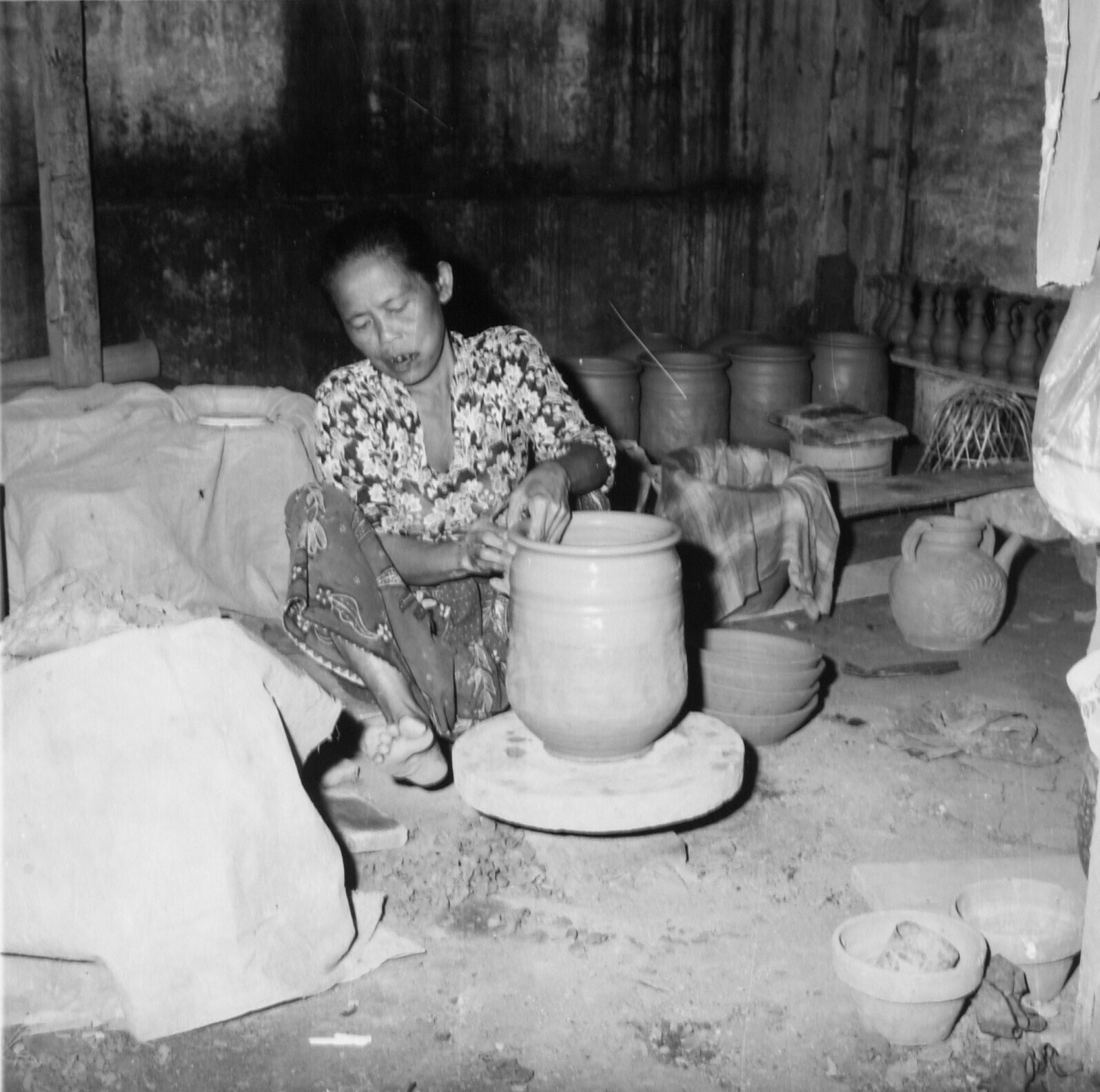 Een vrouw vormt een vaas uit klei met behulp van een...