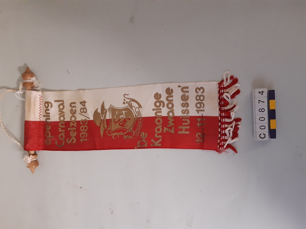 Rood-wit vaantje aan houten hanger opening carnavals...