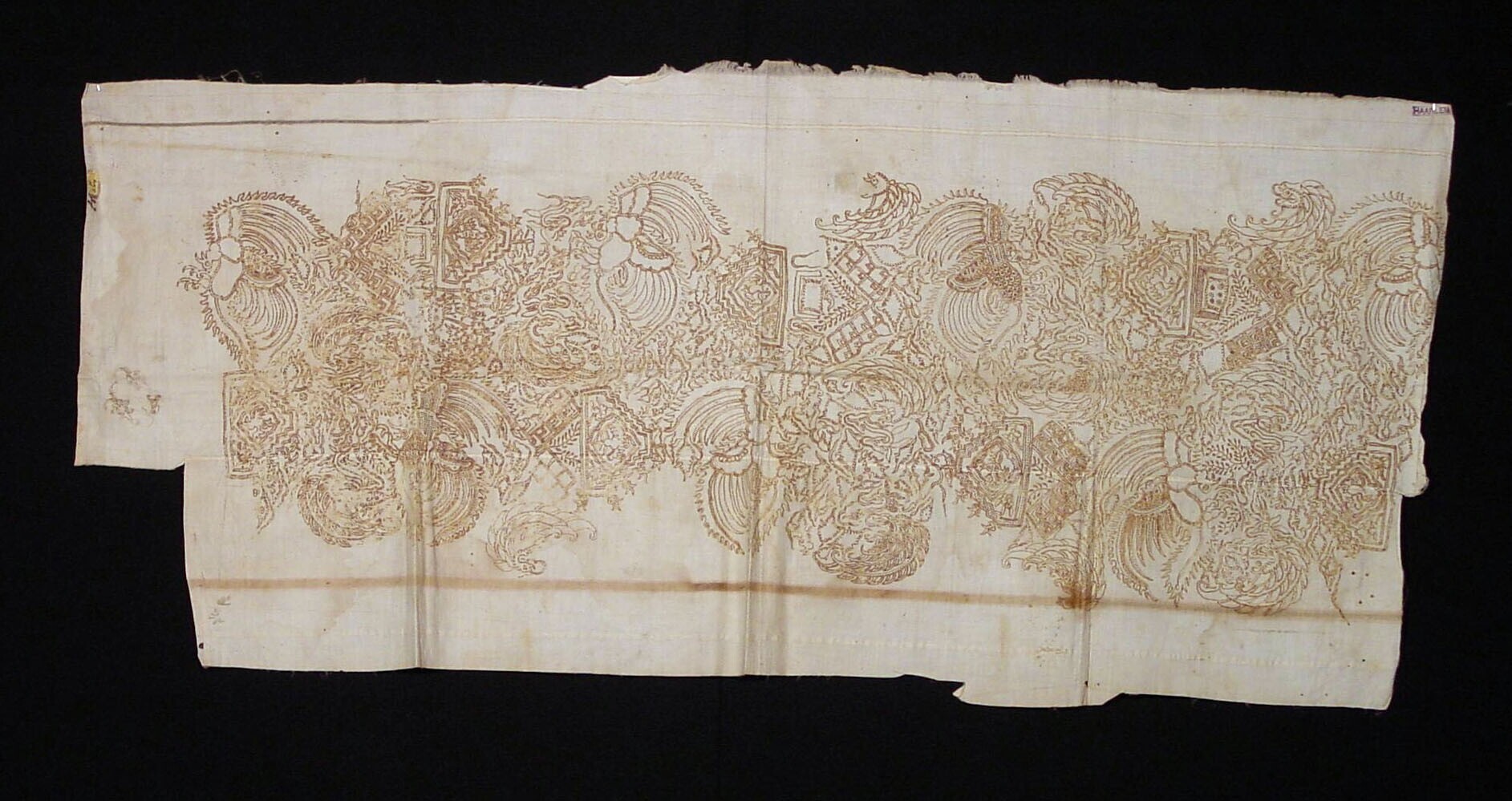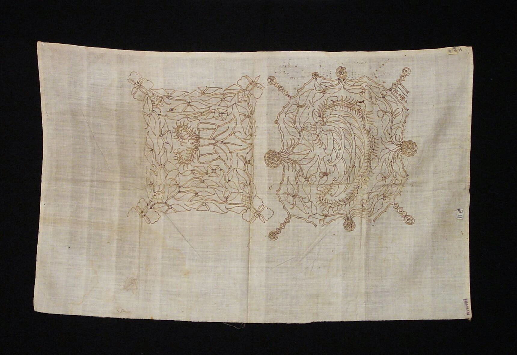 Katoenen doek met twee wastekeningen met traditionel...
