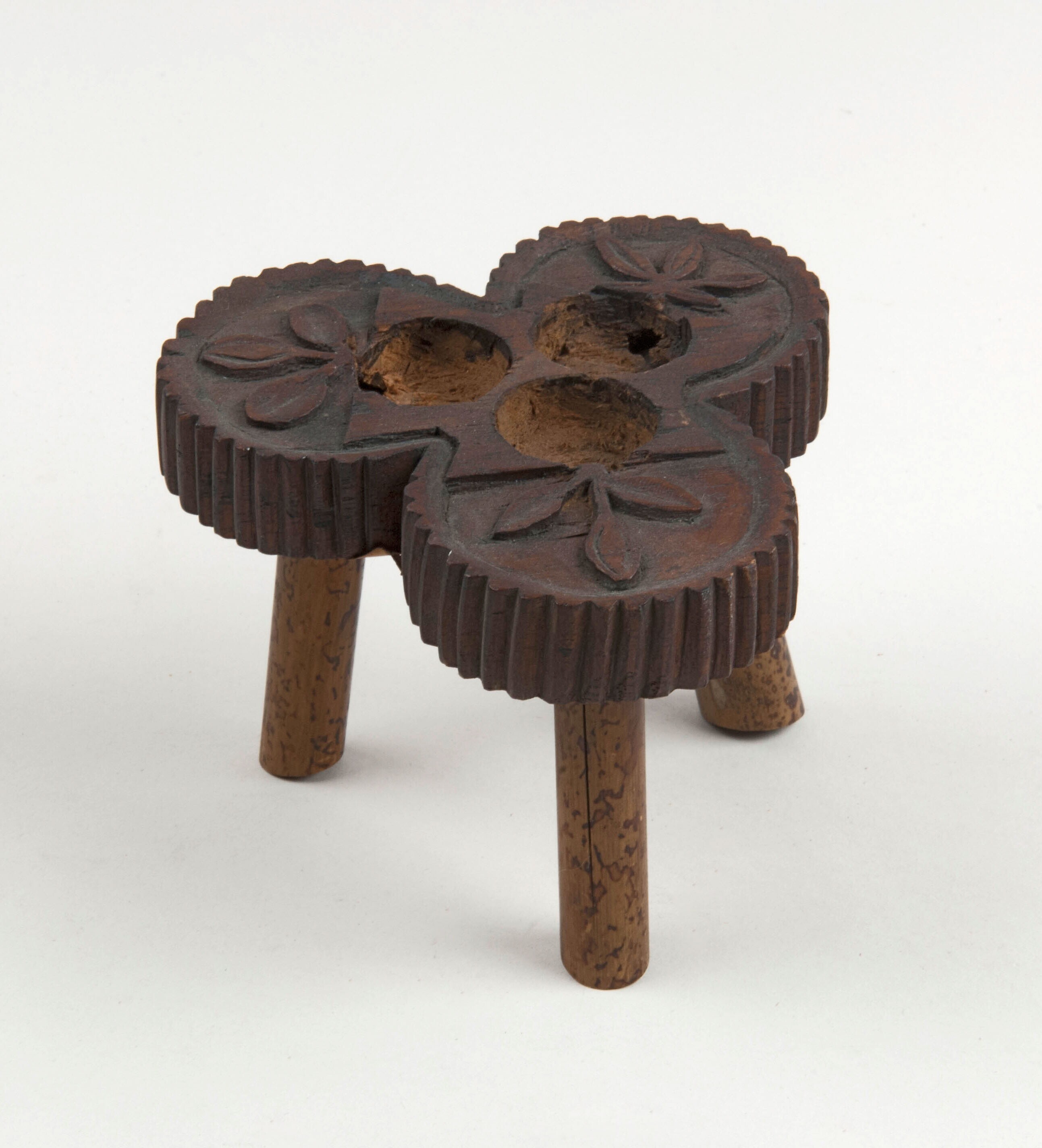 Djatihouten bloemstandaardje in klaverbladvorm met b...