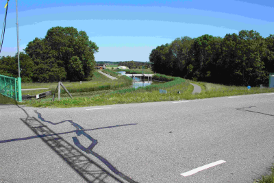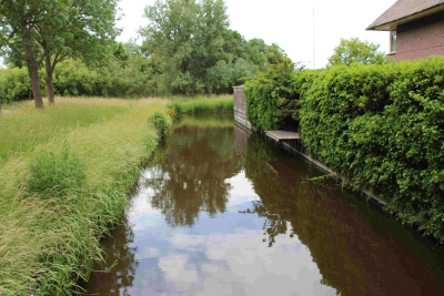 Sloot en bruggen naar de huizen in de Polder van Noo...