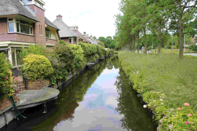 Sloot langs een woongebied in de Lisserpoelpolder, j...