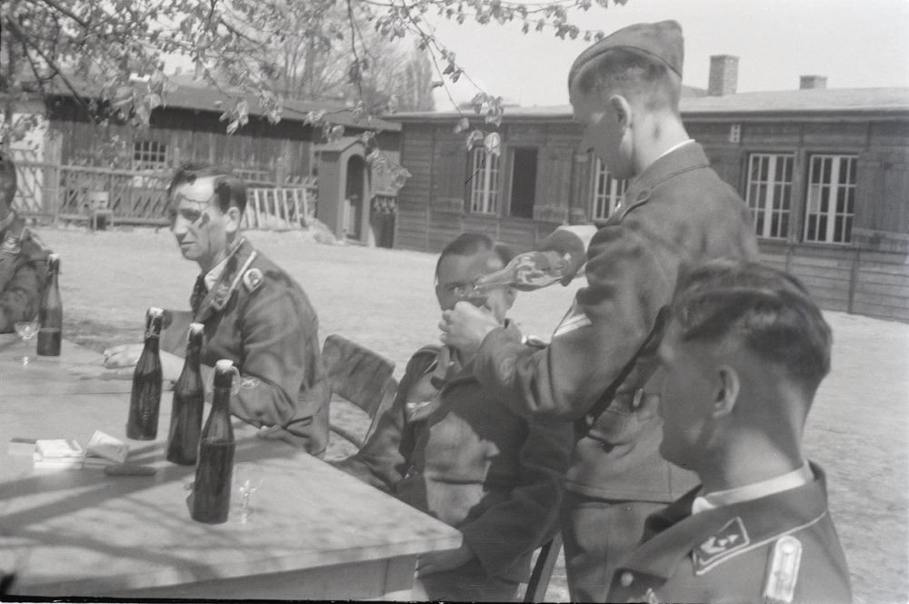 Luftwaffe militairen drinken een glas.