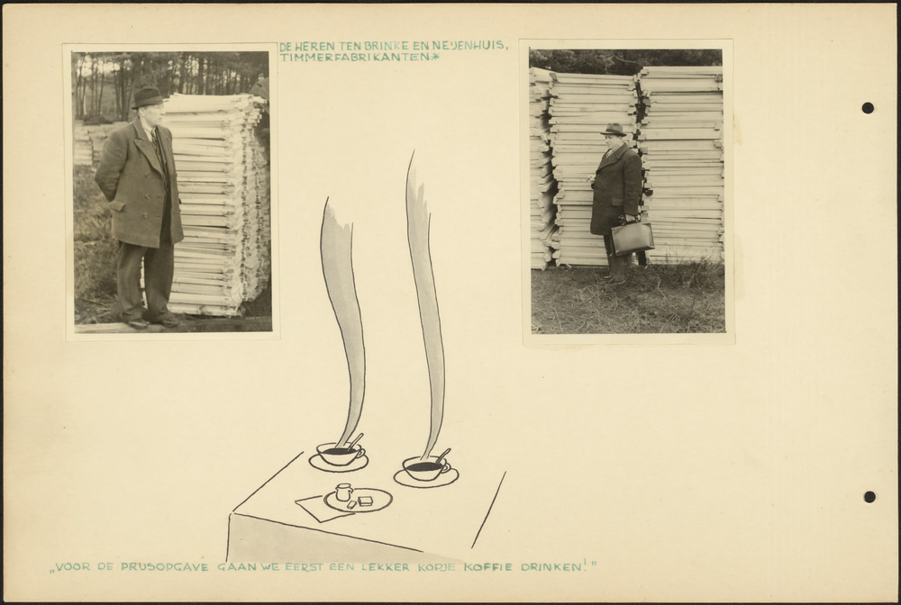 De heren ten Brinke en Neijenhuis bij gereed houtwerk