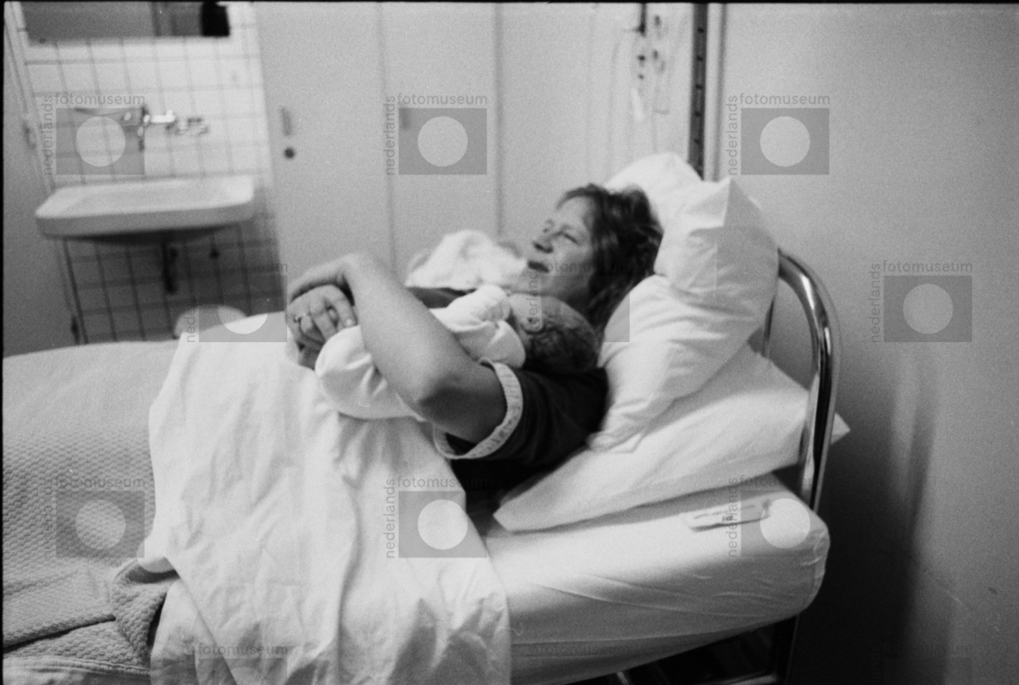 Bernadette met Nike als baby bevalling ziekenhuisbed