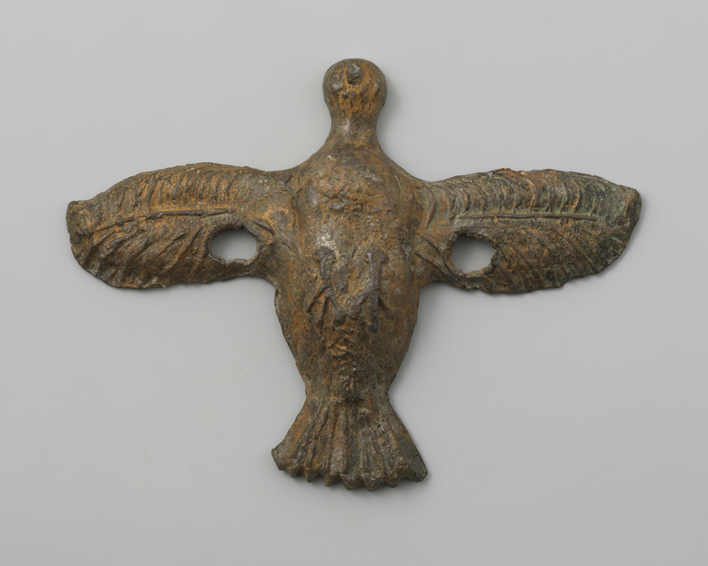 Tegel in tinglazuur, voorstellende ovaal met vogeltj...