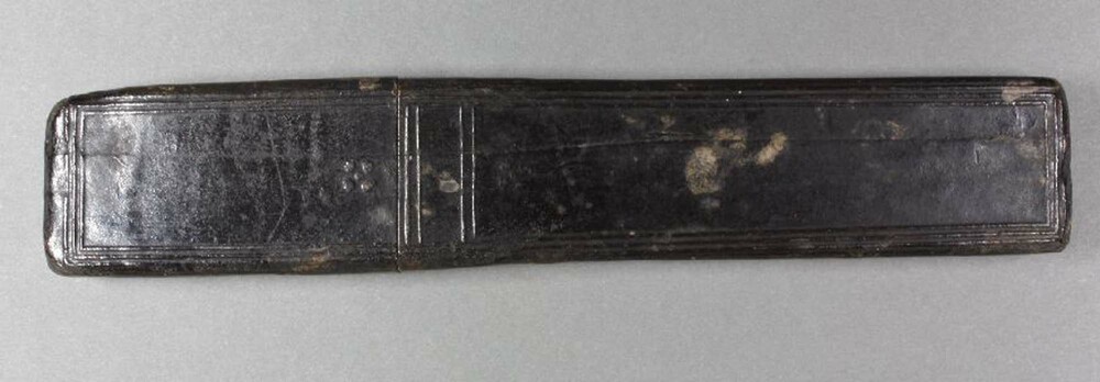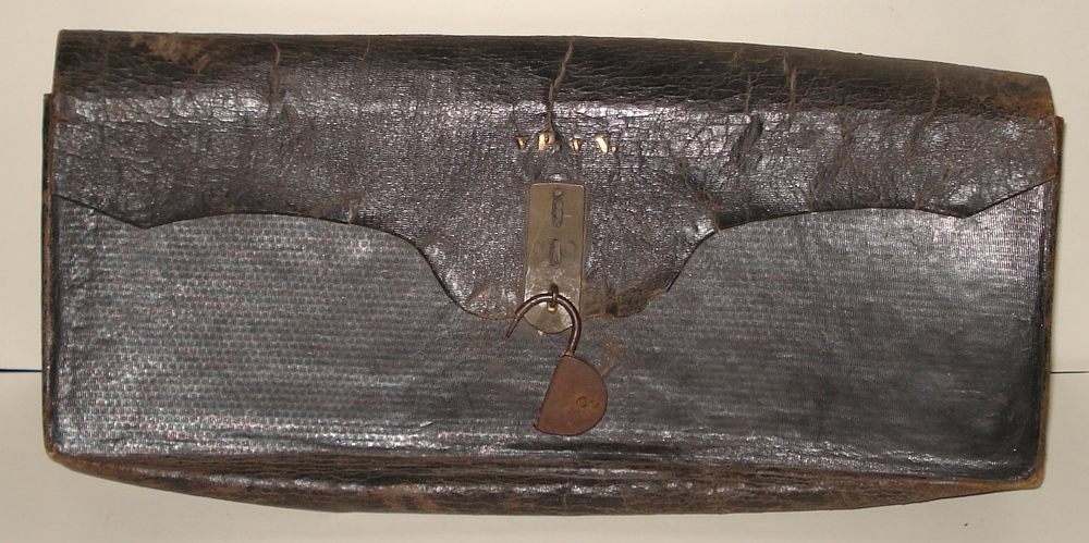 bodetas, Rechthoekig model van gelakt leer met kleps...