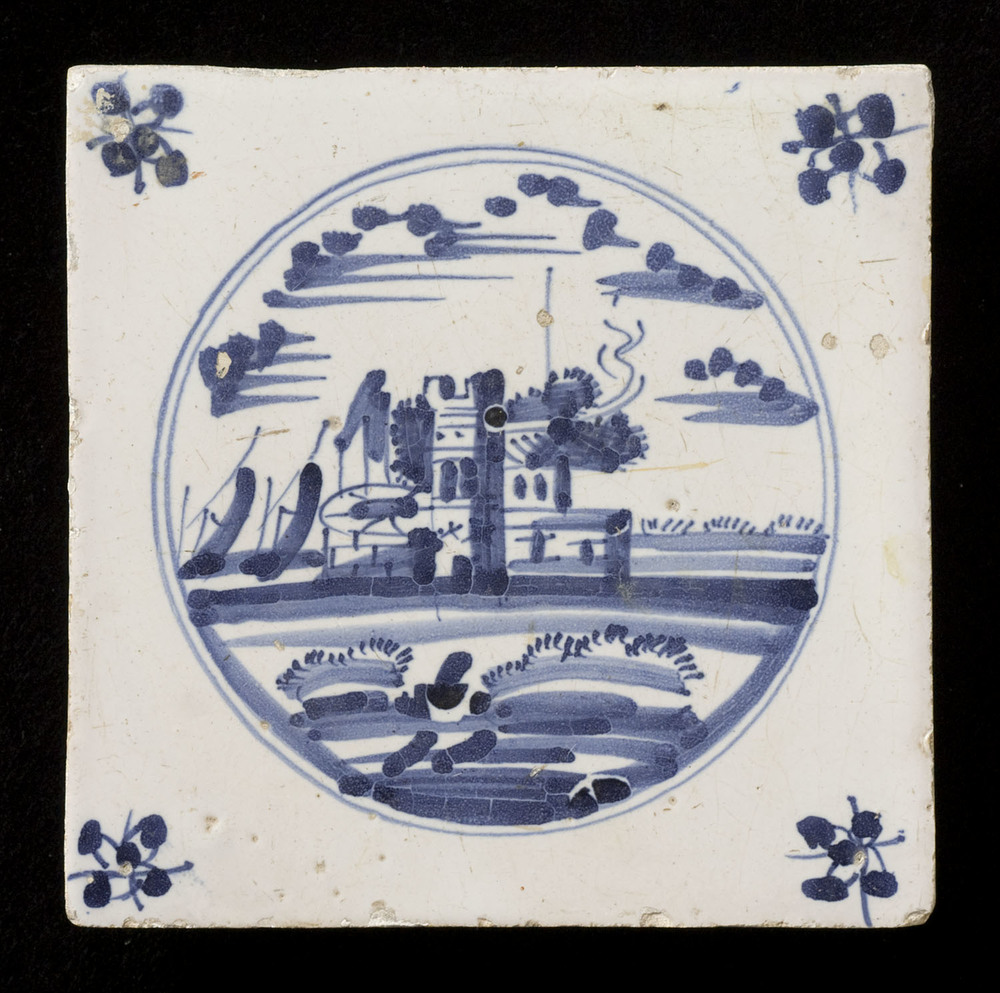 Tegel van keramiek, tinglazuur, voorstellende een ra...