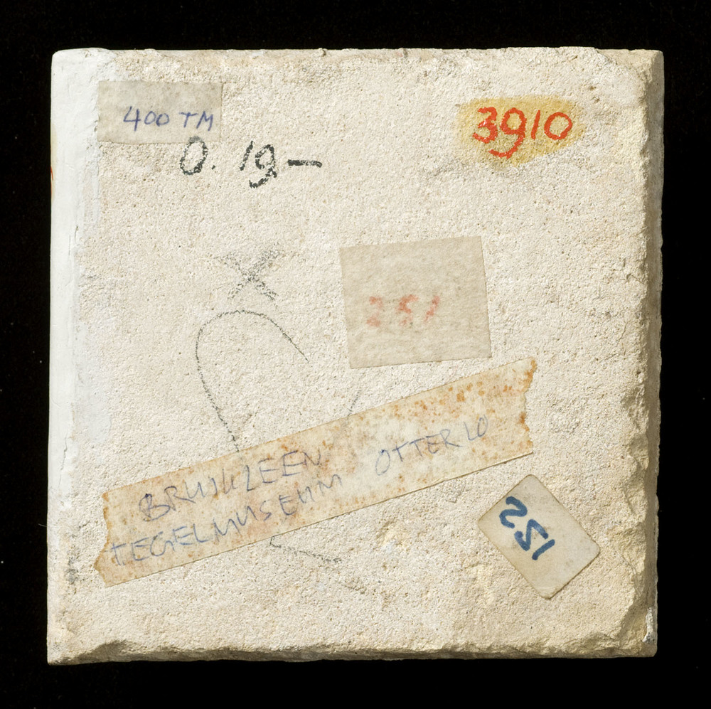 Tegel van aardewerk met tinglazuur, fragment van een...