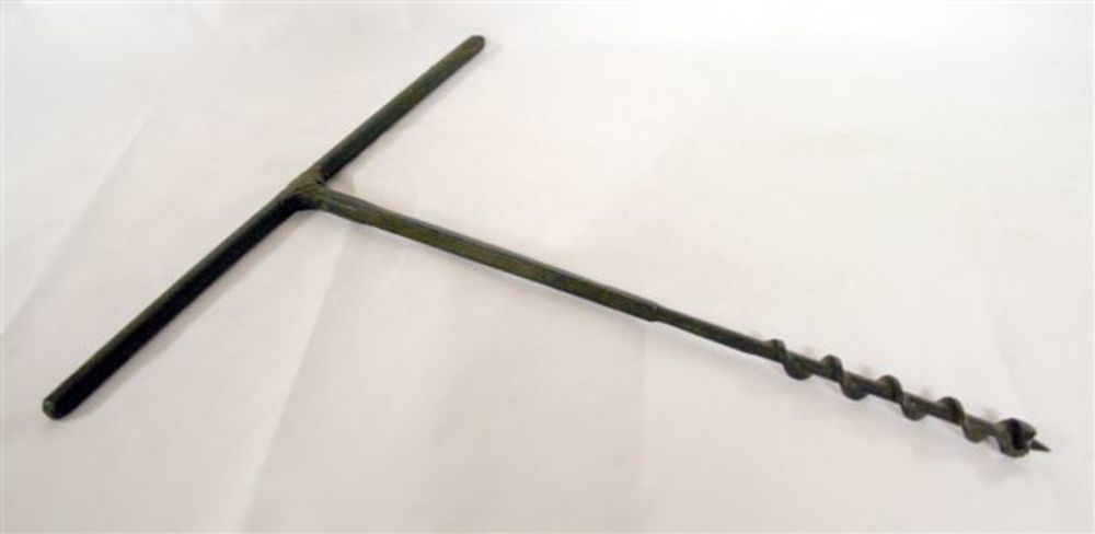 avegaar. Lange ijzeren steel met gedraaid boorstuk. ...