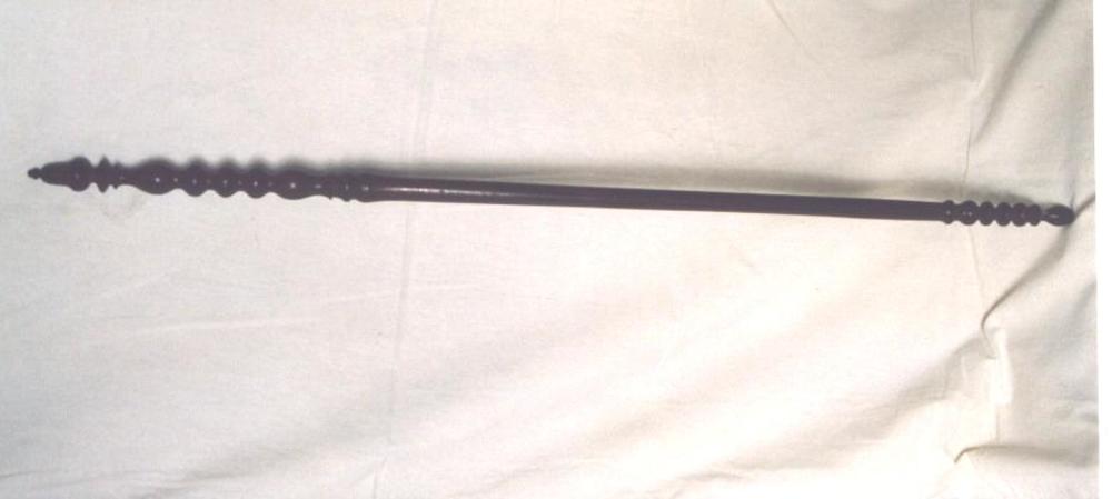 beddenstok van mahonie, ronde met draaiwerk versierd...