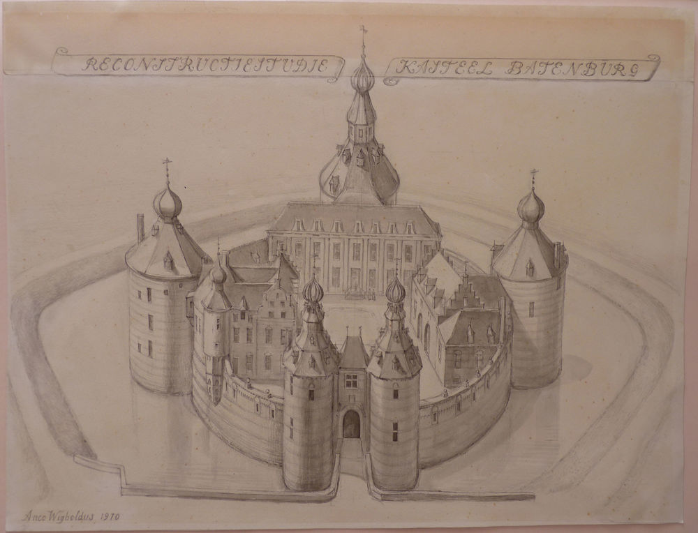 Gewassen pentekening "Kasteel Batenburg" op papier d...